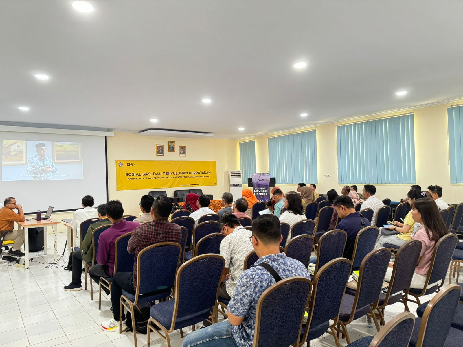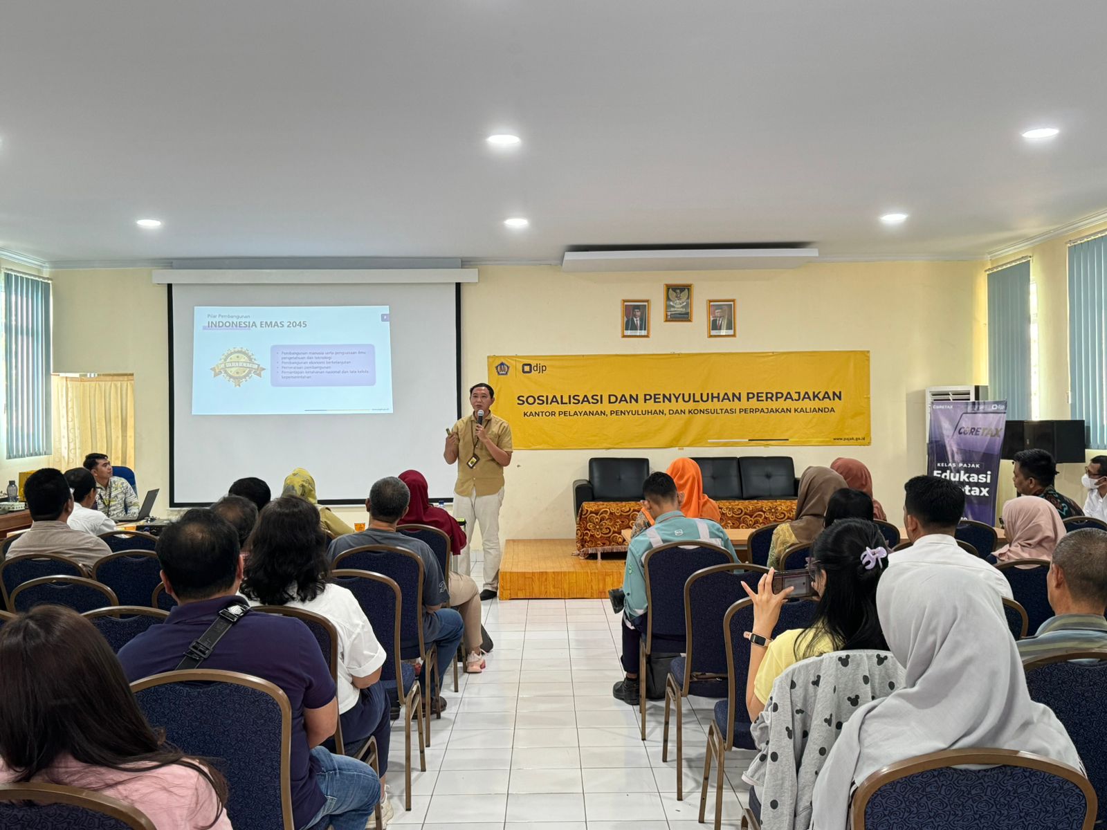 Kantor Pelayanan Pajak (KPP) Pratama Natar bersama Kantor Pelayanan, Penyuluhan, dan Konsultasi Perpajakan (KP2KP) Kalianda menggelar edukasi perpajakan tentang Hak dan Kewajiban Perpajakan bagi Para Wajib Pajak Badan Baru Terdaftar di Lampung Selatan yang bertempat di Aula KP2KP Kalianda, Jalan Indra Bangsawan Nomor 42, Way Urang, Kalianda, Lampung Selatan, Lampung (Kamis, 10/10). Kegiatan ini diikuti oleh 40 perwakilan Wajib Pajak Badan baru yang terdaftar di wilayah Kabupaten Lampung Selatan.