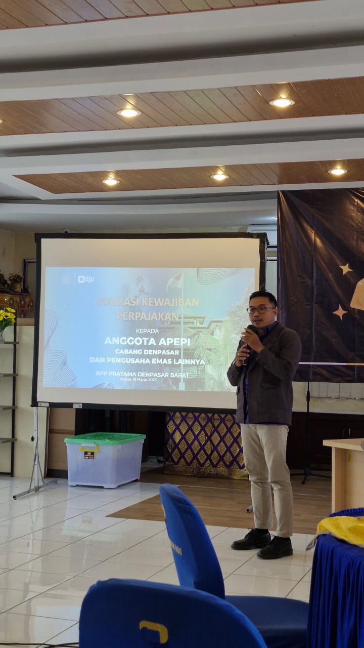 Kantor Pelayanan Pajak (KPP) Pratama Denpasar Barat menggelar edukasi perpajakan kepada para pengusaha emas di Denpasar (Selasa, 18/3). Sosialisasi yang berlangsung di Ruang Kolaborasi KPP Pratama Denpasar Barat mengundang 35 pengusaha emas yang menjadi wajib pajak di KPP Pratama Denpasar Barat.