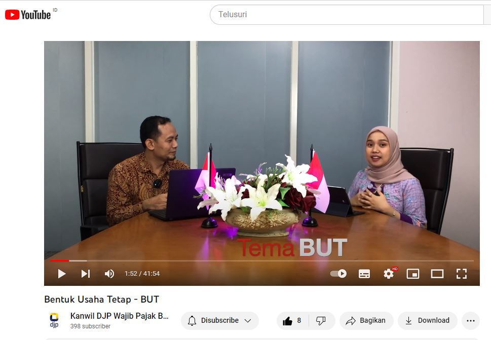 Tim Penyuluh Pajak Kantor Wilayah Direktorat Jenderal Pajak (Kanwil DJP) Wajib Pajak Besar kembali mengunggah siniar terbaru pada aplikasi Youtube dengan judul Bijak– Bincang Pajak di Jakarta (Rabu, 8/3). Episode kali ini mengangkat tema Bentuk Usaha Tetap (BUT) yang merupakan lanjutan dari episode sebelumnya, yaitu Perjanjian Penghindaran Pajak Berganda (P3B).