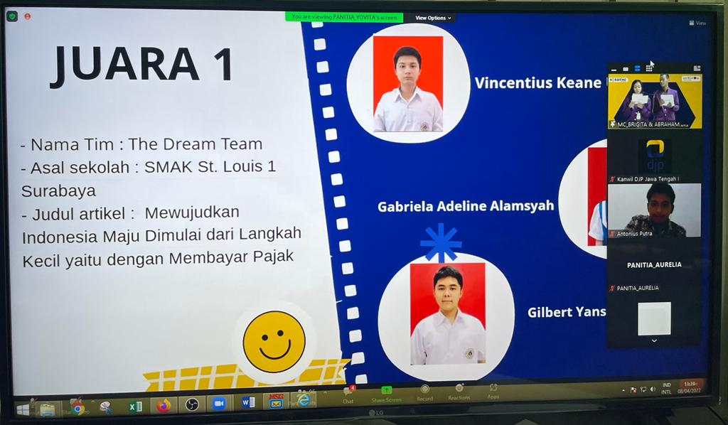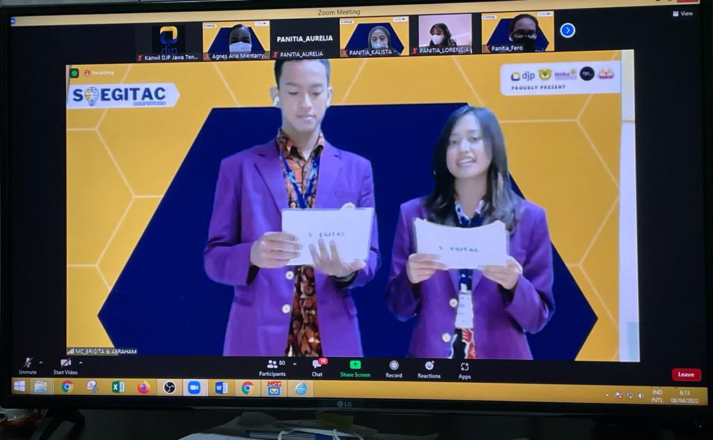 Kantor Wilayah Direktorat Jenderal Pajak (Kanwil DJP) Jawa Tengah (Jateng) I mengikuti acara Soegitac Competition 2022 yang diselenggarakan oleh Universitas Katolik (Unika) Soegijapranata Semarang melalui aplikasi Zoom Meeting di Semarang (Jumat, 08/4)
