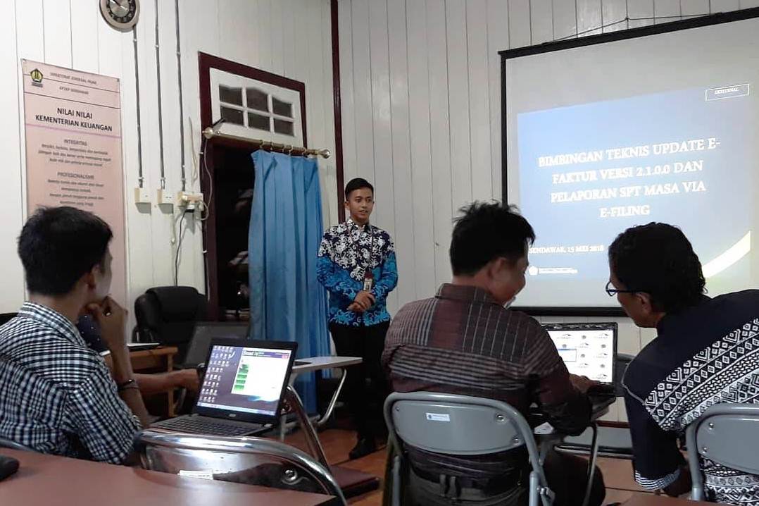 Sehubungan dengan adanya aplikasi e-Faktur versi terbaru serta untuk membantu Wajib Pajak Badan di wilayah Kutai Barat agar tetap up-to-date, Kantor Pelayanan, Penyuluhan, dan Konsultasi Perpajakan (KP2KP) Sendawar mengadakan bimbingan teknis terkait cara update e-Faktur ke versi 2.1.0.0 beserta cara penggunaannya di Aula KP2KP Sendawar, Jalan Jend. Sudirman, Sendawar (Selasa 15/5). Selain bimbingan teknis update Aplikasi e-Faktur, untuk meningkatkan efisiensi, kenyamanan, dan kemudahan pelaporan SPT Masa bagi WP Badan di wilayah Kutai Barat, KP2KP Sendawar juga mengadakan sosialisasi sekaligus bimbingan pelaporan SPT secara online dengan metode e-filing.