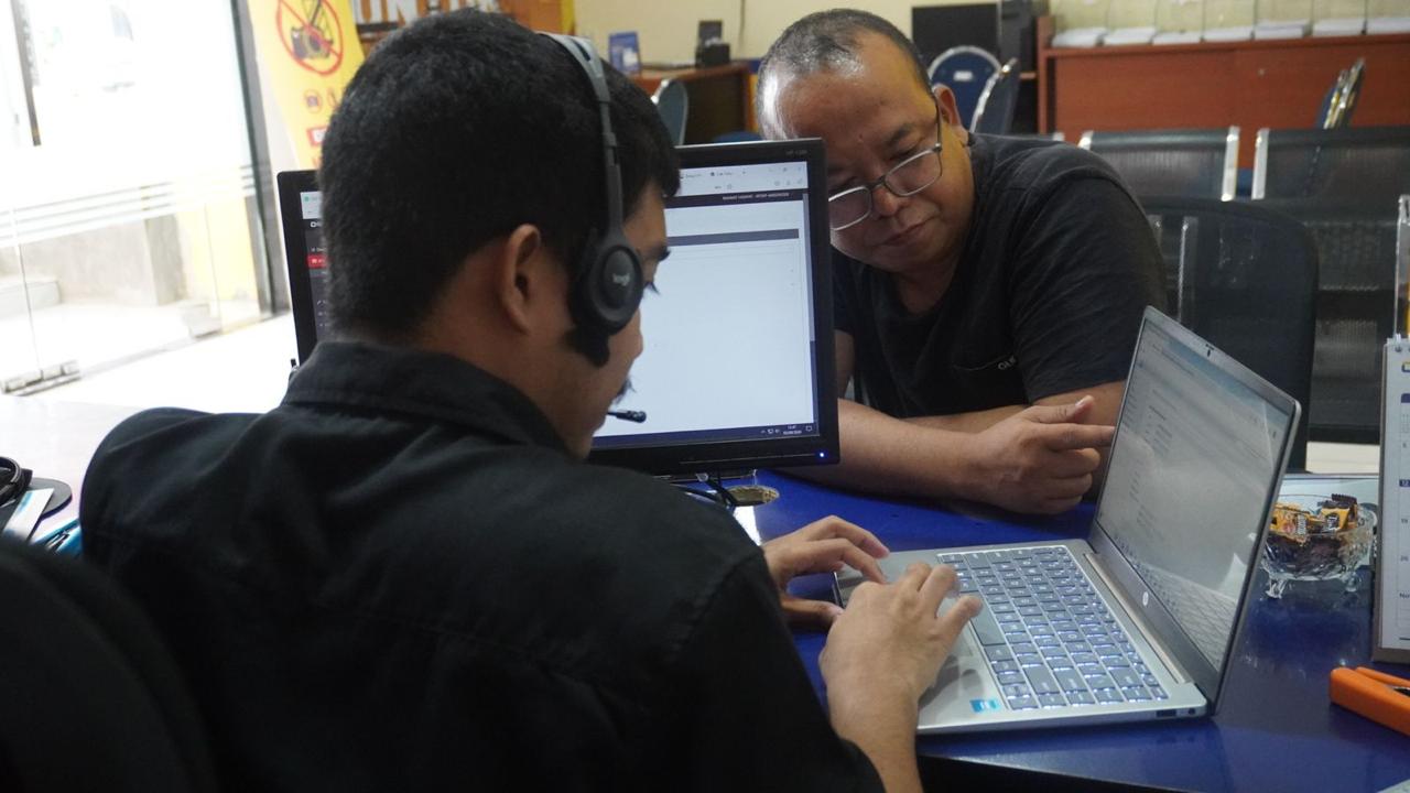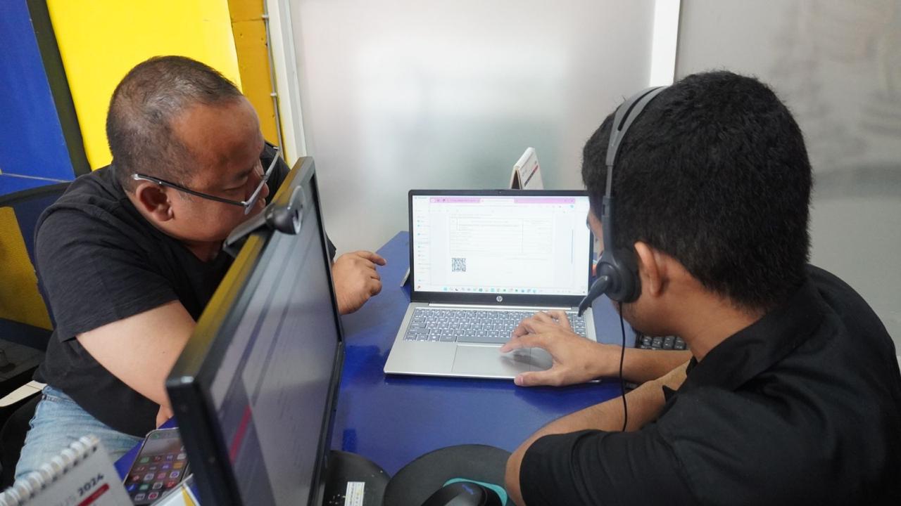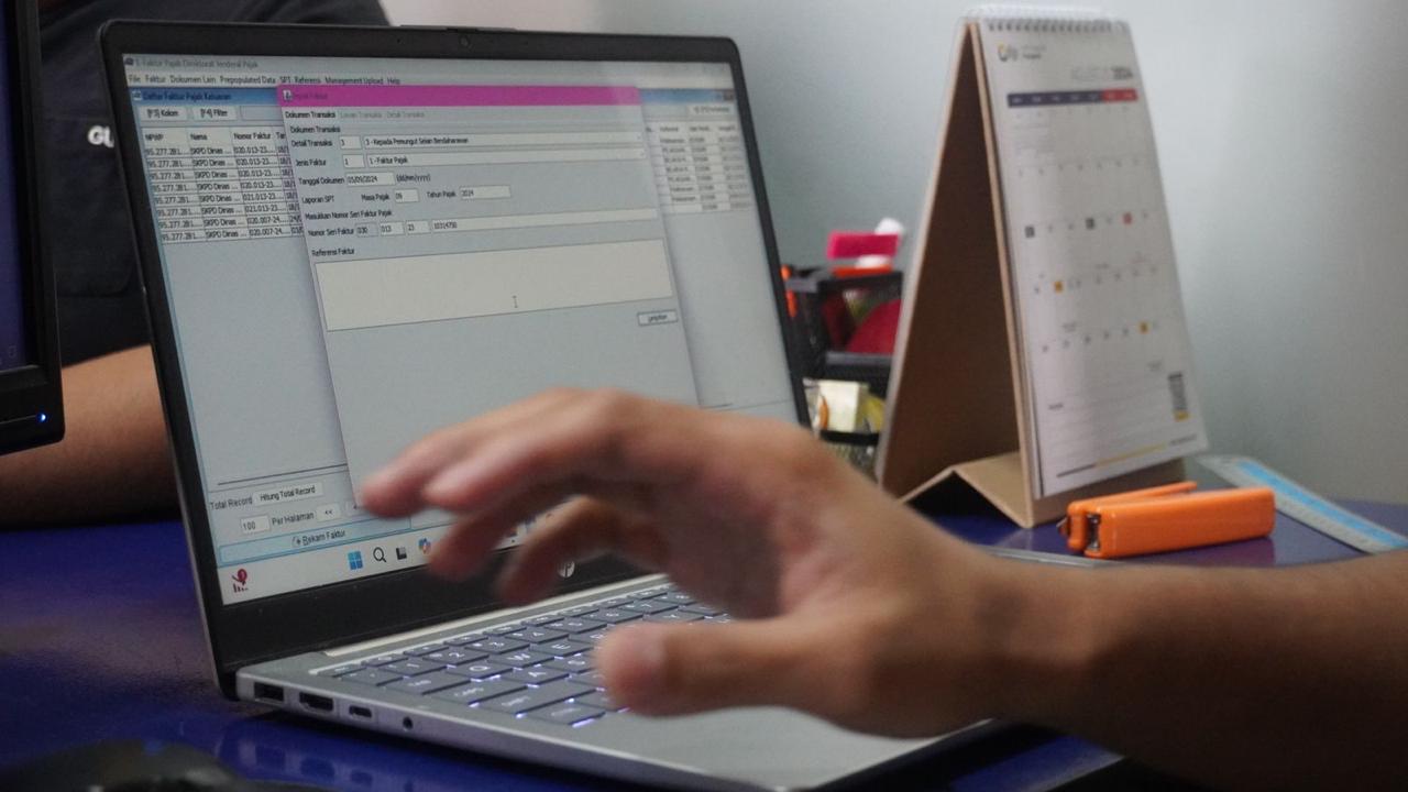 Rahmat Hidayat yang tengah bertugas di loket Tempat Pelayanan Terpadu (TPT) menyambut hangat kedatangan wajib pajak dan segera memandu proses pembaruan aplikasi e-Faktur versi terbaru, yakni versi 4.0.