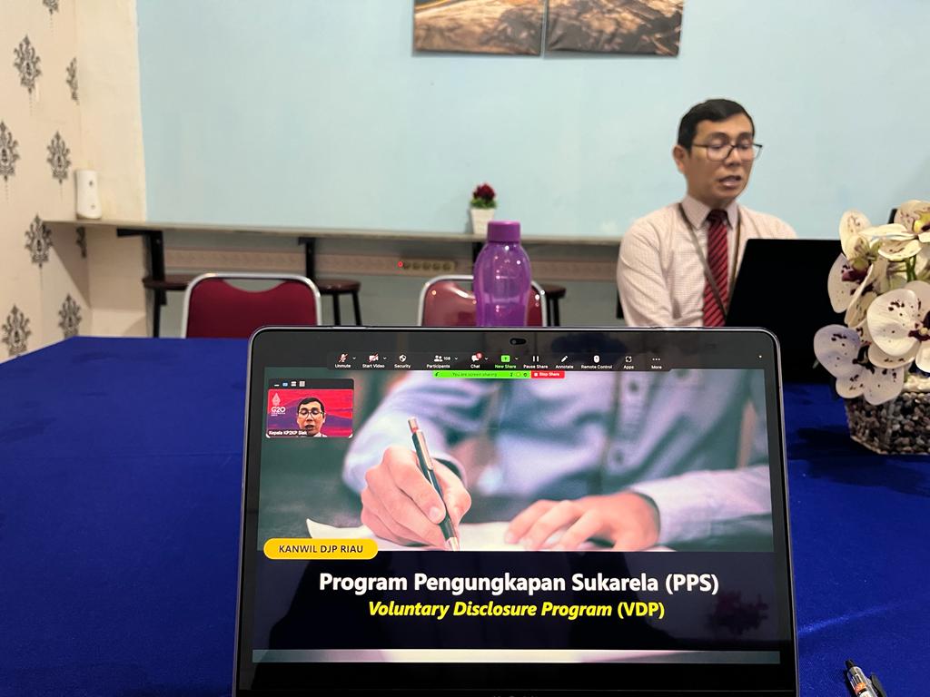 Kantor Pelayanan, Penyuluhan, dan Konsultasi Perpajakan (KP2KP) Siak Sri Indrapura bekerja sama dengan Dinas Pendidikan dan Kebudayaan dan Dinas Kesehatan Kabupaten Siak menyelenggarakan Kegiatan Bincang Pajak secara daring dengan mengusung tema Edukasi Program Pengungkapan Sukarela (PPS) dan Edukasi Perubahan Ketentuan Perpajakan Instansi Pemerintah, Senin (20/6)