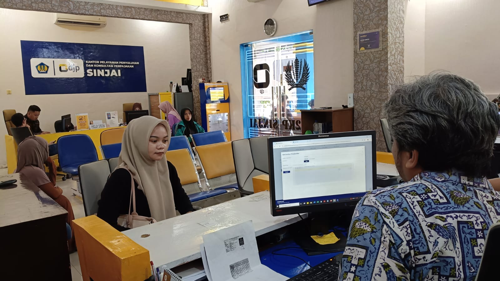 Kantor Pelayanan, Penyuluhan, dan Konsultasi Perpajakan (KP2KP) Sinjai memberikan edukasi kepada wajib pajak di loket Tempat Pelayanan Terpadu (TPT) KP2KP Sinjai, Kabupaten Sinjai (Jumat, 9/5). Wajib pajak berkonsultasi tentang proses validasi Pajak Penghasilan atas Pengalihan Hak atas Tanah dan/atau Bangunan (PPhTB) yang diperketat dengan kewajiban data Nomor Induk Kependudukan (NIK) pembeli harus sudah terintegrasi NPWP.