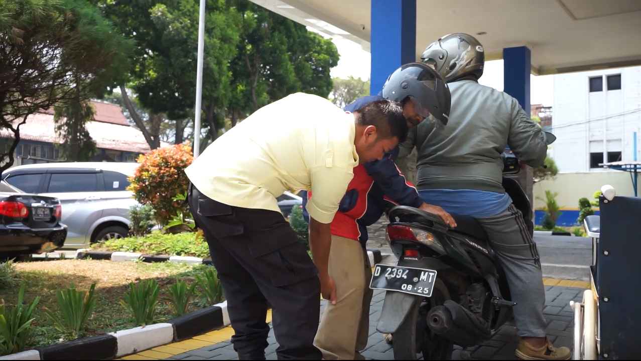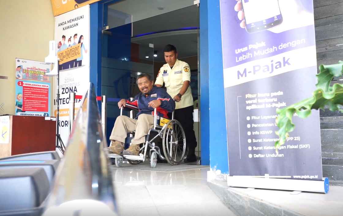 Rachmat, salah satu wajib pajak difabel pada Kantor Pelayanan Pajak (KPP) Pratama Garut mengunjungi KPP Pratama Garut (Rabu, 27/9). Meskipun memiliki keterbatasan, Rachmat tetap bisa menerima pelayanan secara langsung di KPP Pratama Garut. KPP Pratama Garut sendiri telah menyediakan berbagai sarana dan prasarana pendukung kegiatan layanan diantaranya kursi roda, jalur khusus difabel, dan parkir khusus difabel.