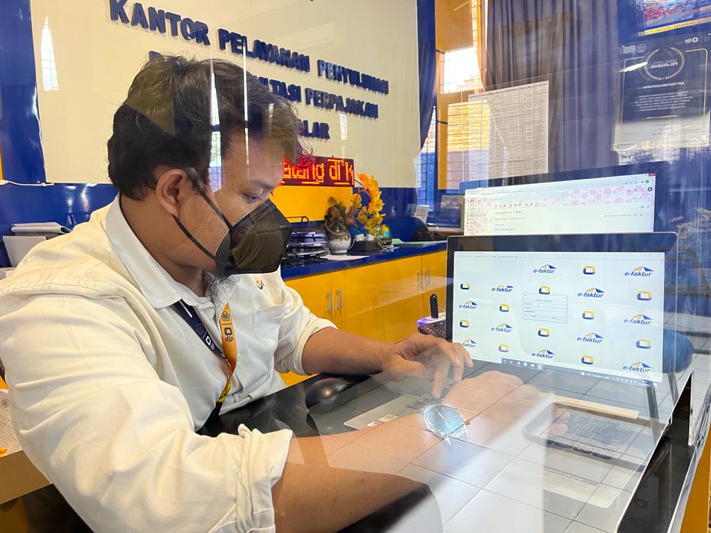 Wajib pajak yang datang untuk mendapatkan konsultasi pada loket dibimbing oleh petugas layanan untuk memasang aplikasi efaktur terbaru pada masing-masing perangkat laptop wajib pajak serta bagaimana cara pengoprasian aplikasi e-faktur tersebut.