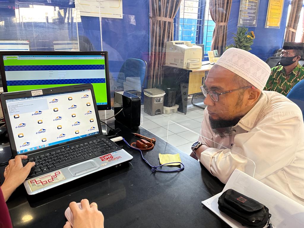 Kantor Pelayanan, Penyuluhan, dan Konsultasi Perpajakan (KP2KP) Takalar ramai dikunjungi oleh wajib pajak yang ingin melakukan pembaharuan aplikasi e-faktur desktop versi 3.2 dalam rangka implementasi penyesuaian tarif PPN pada Undang-Undang Harmonisasi Perpajakan (UU HPP) yang mulai berlaku 1 April 2022, di Tempat Pelayanan Terpadu (TPT) KP2KP Takalar (Senin, 18/04).