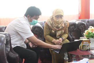 Wakil Bupati Sumenep Dewi Khalifah didampingi Kepala Kantor Pelayanan, Penyuluhan, dan Konsultasi Perpajakan Sumenep (KP2KP) Sumenep Maurus Nirboyo Sulistyo Aji melakukan pelaporan SPT melalui e-Filing di Kantor Wakil Bupati, Jalan Dr Cipto No.33, Kolor, Sumenep (Senin, 29/3).