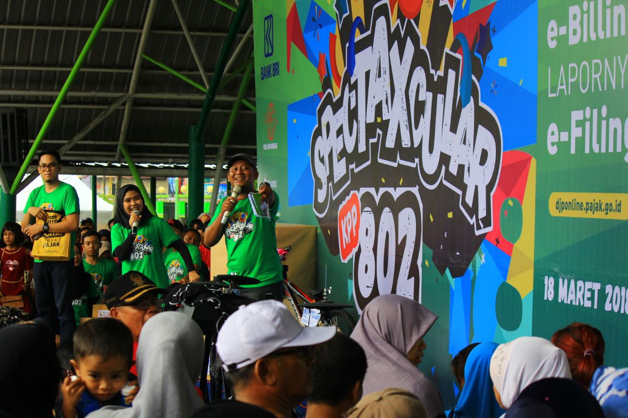 Nasya dan Eka selaku MC membakar semangat para peserta Spectaxcular dengan memberikan door prize dari kupon yang nomornya akan diundi terus dilanjutkan oleh games dan quiz yang membuat acara tetap meriah walaupun hujan tak kunjung berhenti. Loket pelaporan SPT Tahunan juga ternyata tak kalah ramainya dengan suasana di atas panggung. Warga Parepare yang membawa NPWP dan bukti potong antre tidak ingin ketinggalan melaksanakan kewajiban mereka.