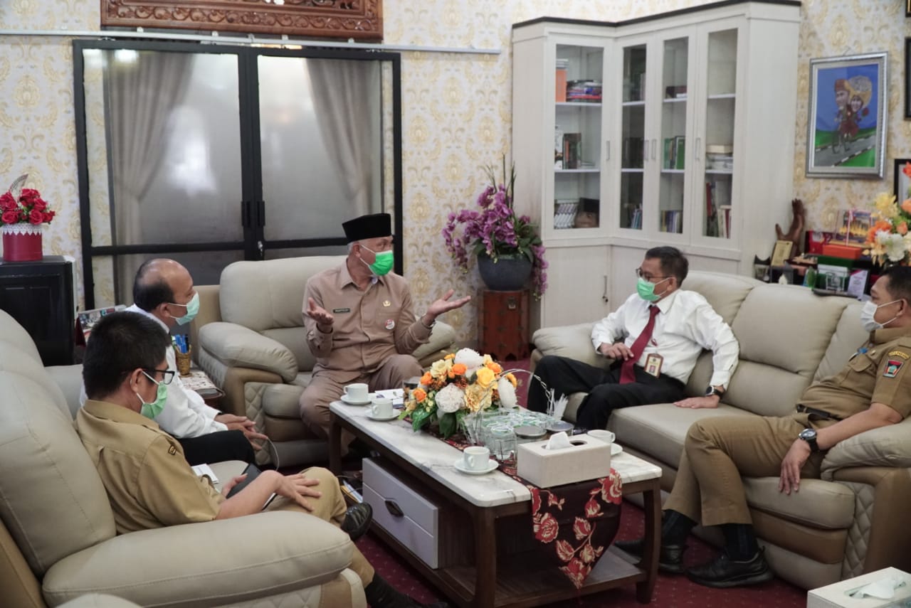 Kepala KPP Pratama Padang Satu Agus Budihardjo bersama Kepala KPP Pratama Padang Dua Prabowo Pribadi mengunjungi rumah dinas Walikota Padang (Senin, 22/2).