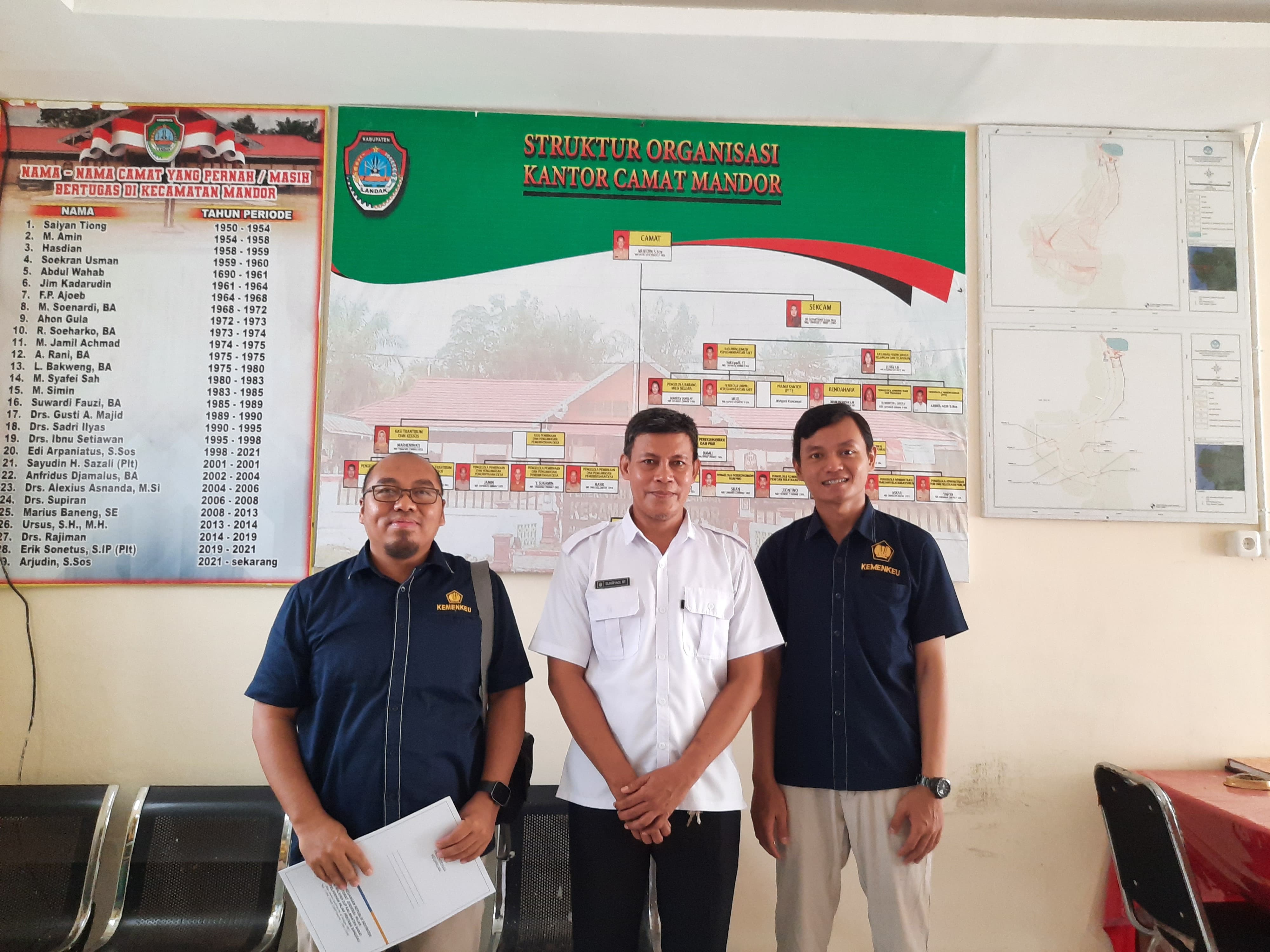 Kepala Kantor Pelayanan, Penyuluhan, dan Konsultasi Perpajakan (KP2KP) Ngabang, Prima Wihantoro, didampingi oleh pegawai KP2KP Ngabang, M Kumul Efendi, mengunjungi Kantor Camat Mandor, Kabupaten Landak (Rabu, 9/7).
