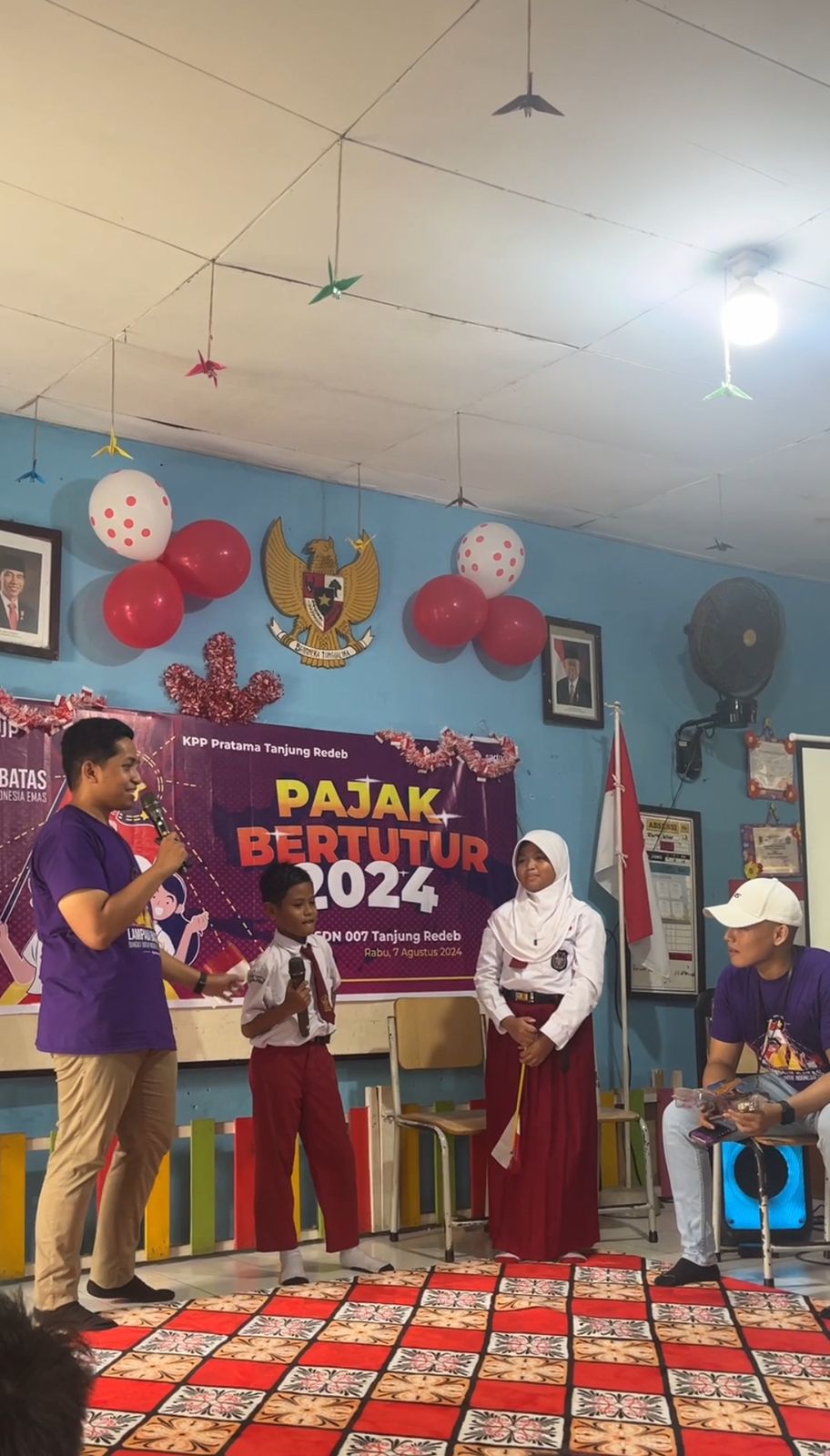 Direktorat Jenderal Pajak (DJP) selenggarakan kegiatan Pajak Bertutur 2024 secara serentak bersama seluruh kantor pajak di Indonesia (Rabu, 7/8). Pajak bertutur ini merupakan kegiatan tahunan yang diselenggarakan oleh DJP untuk memberikan edukasi perpajakan kepada generasi muda untuk meningkatkan pengetahuan terkait pajak secara umum. Kantor Pelayanan Pajak (KPP) Pratama Tanjung Redeb pun turut memeriahkan acara Pajak Bertutur dengan menggandeng Sekolah Dasar (SD) Negeri 007 Tanjung Redeb yang berlokasi di Jalan APT Pranoto, Karang Ambun, Tanjung Redeb, Kab. Berau, Kalimantan Timur.