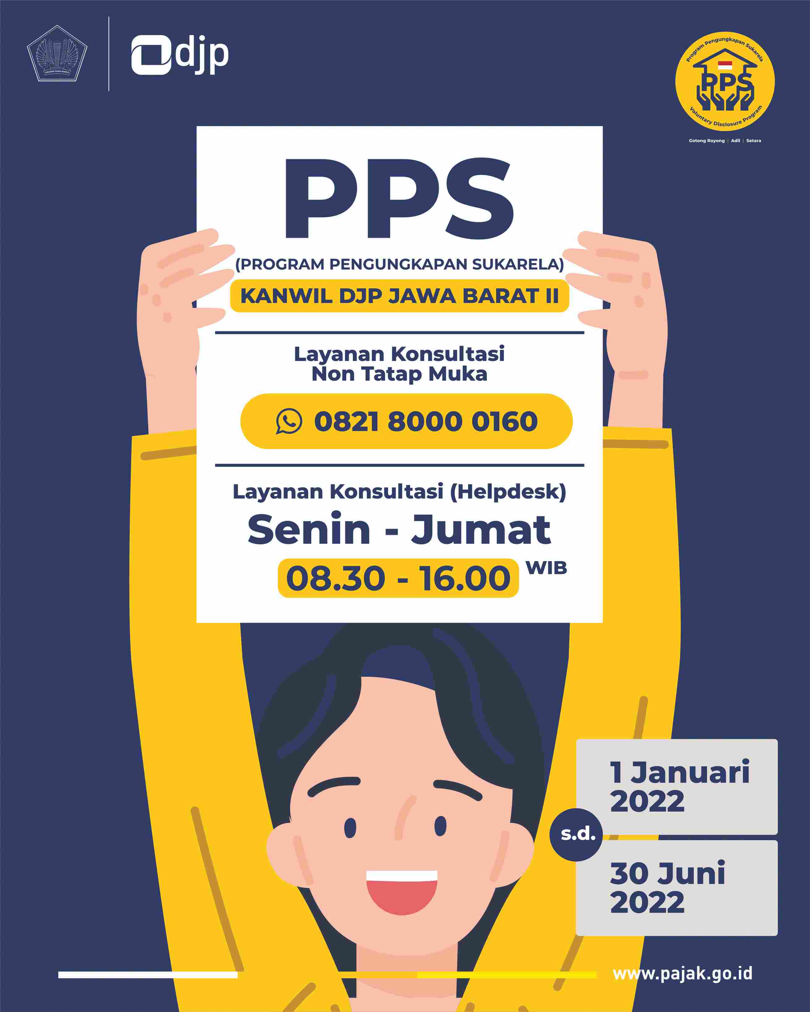 Seluruh KPP di lingkungan Kanwil DJP Jawa Barat II siap memberikan pelayanan kepada Wajib Pajak dalam memberikan konsultasi terkait PPS ini.