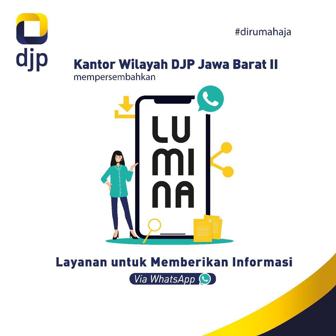 Kanwil DJP Jawa Barat II mengembangkan layanan informasi serta edukasi melalui percakapan otomatis Whatsapp dengan nama LUMINA (Layanan Untuk Memberikan Informasi via WA). .