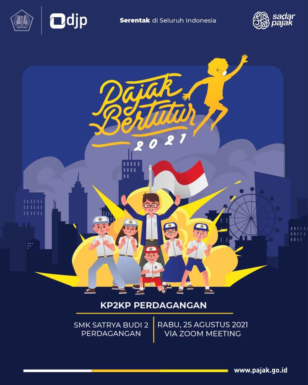 Kantor Pelayanan Penyuluhan dan Konsultasi Perpajakan (KP2KP) Perdagangan akan mengadakan Pajak Bertutur 2021 bersama SMK Satrya Budi 2 Perdagangan secara daring melalui aplikasi Zoom Meeting. Kegiatan tersebut akan dilaksanakan pada Rabu, 25 Agustus 2021 pukul 09.00 - 11.00 WIB di KP2KP Perdagangan, Kabupaten Simalungun.