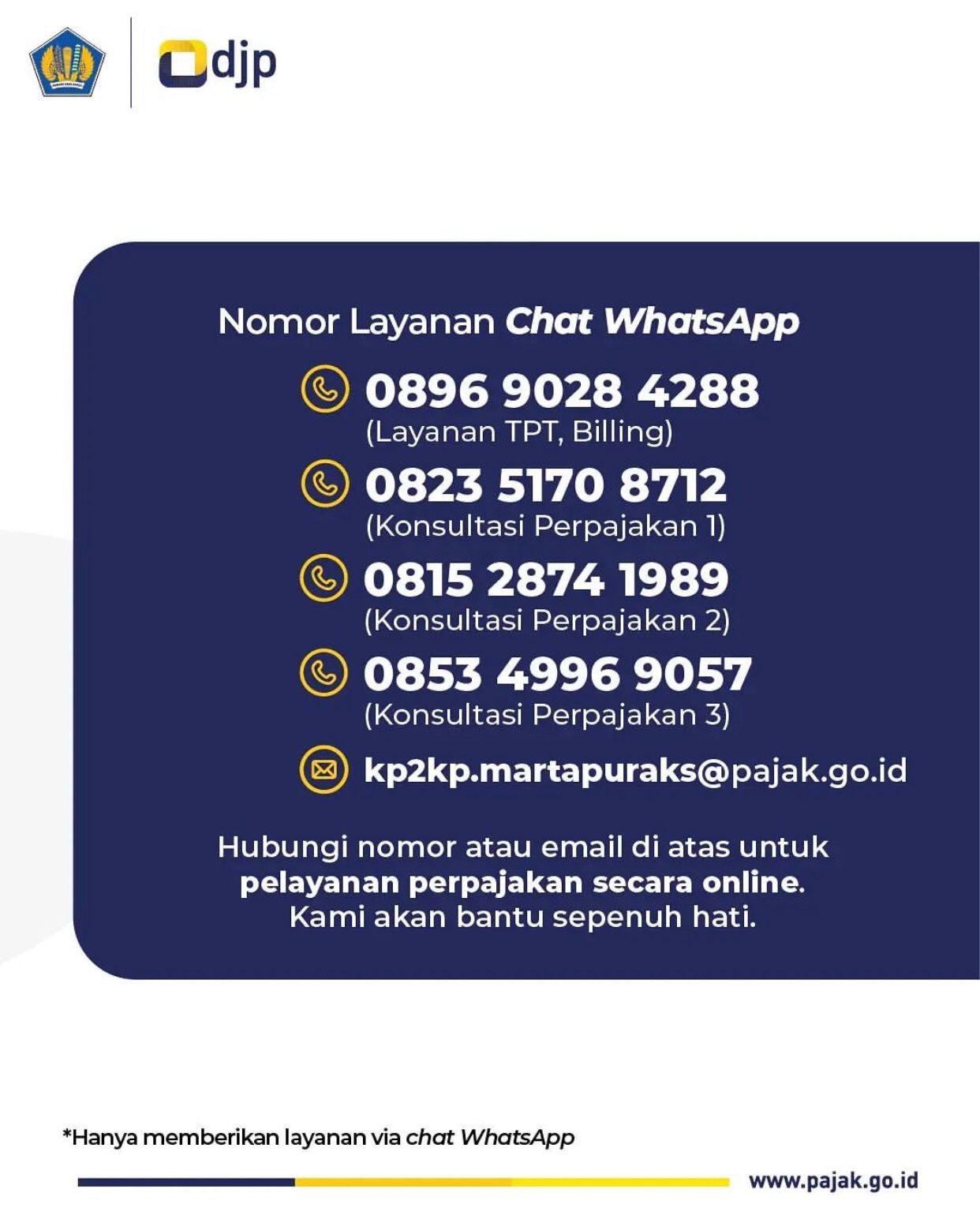 Untuk mempermudah layanan wajib pajak di KP2KP Martapura, wajib pajak dapat menghubungi nomor whatsapp melalui chat pada nomor berikut