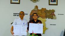 Kepala Kantor Wilayah Direktorat Jenderal Pajak (Kanwil DJP) Banten Cucu Supriatna Bersama Kepala Lembaga Penyiaran Publik Radio Republik Indonesia (LPP RRI) Banten Ruli Prasetya Hadi menandatangani Perjanjian Kerja Sama Tentang Penyiaran Informasi Publik Perpajakan di Ruang Rapat Carita Kanwil DJP Banten.