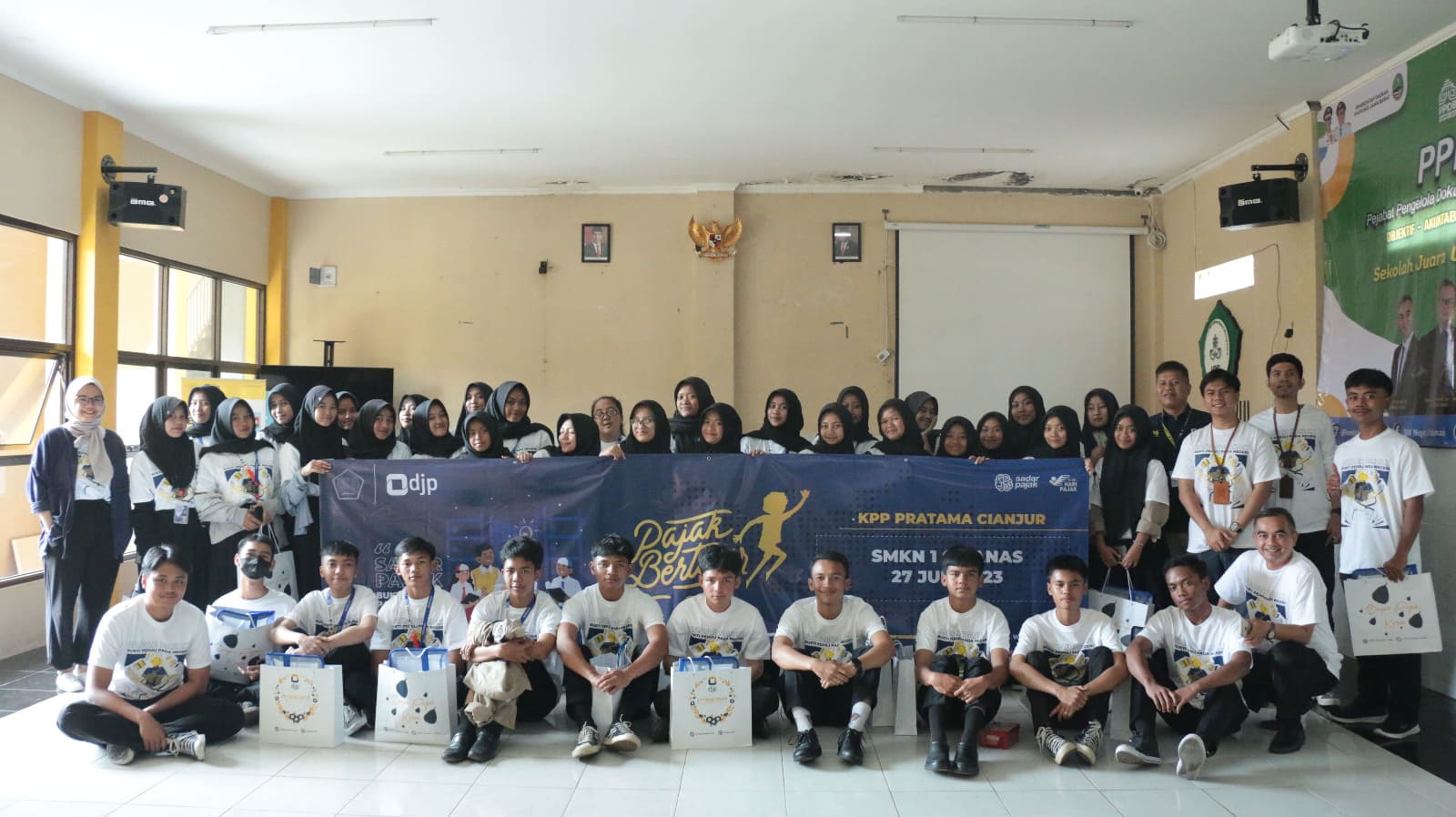 Kantor Pelayanan Pajak (KPP) Pratama Cianjur menggelar kegiatan Pajak Bertutur 2023 di SMKN 1 Cipanas, Kabupaten Cianjur (Kamis, 27/7). Kegiatan yang diikuti oleh 45 siswa ini mengangkat tema "Generasi Muda Sadar Pajak Bukti Peduli pada Negeri" dengan tagline “Sehari Mengenal, Selamanya Bangga”