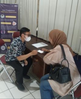 Seorang wajib pajak (WP) yang berprofesi sebagai Sales Promotion Girl (SPG) mal mengunjungi Kantor Pelayanan, Penyuluhan dan Konsultasi Perpajakan (KP2KP) Pelabuhan Ratu di Jalan Bhayangkara KM 1, Citepus, Palabuhanratu, Kabupaten Sukabumi (Jumat, 16/12).