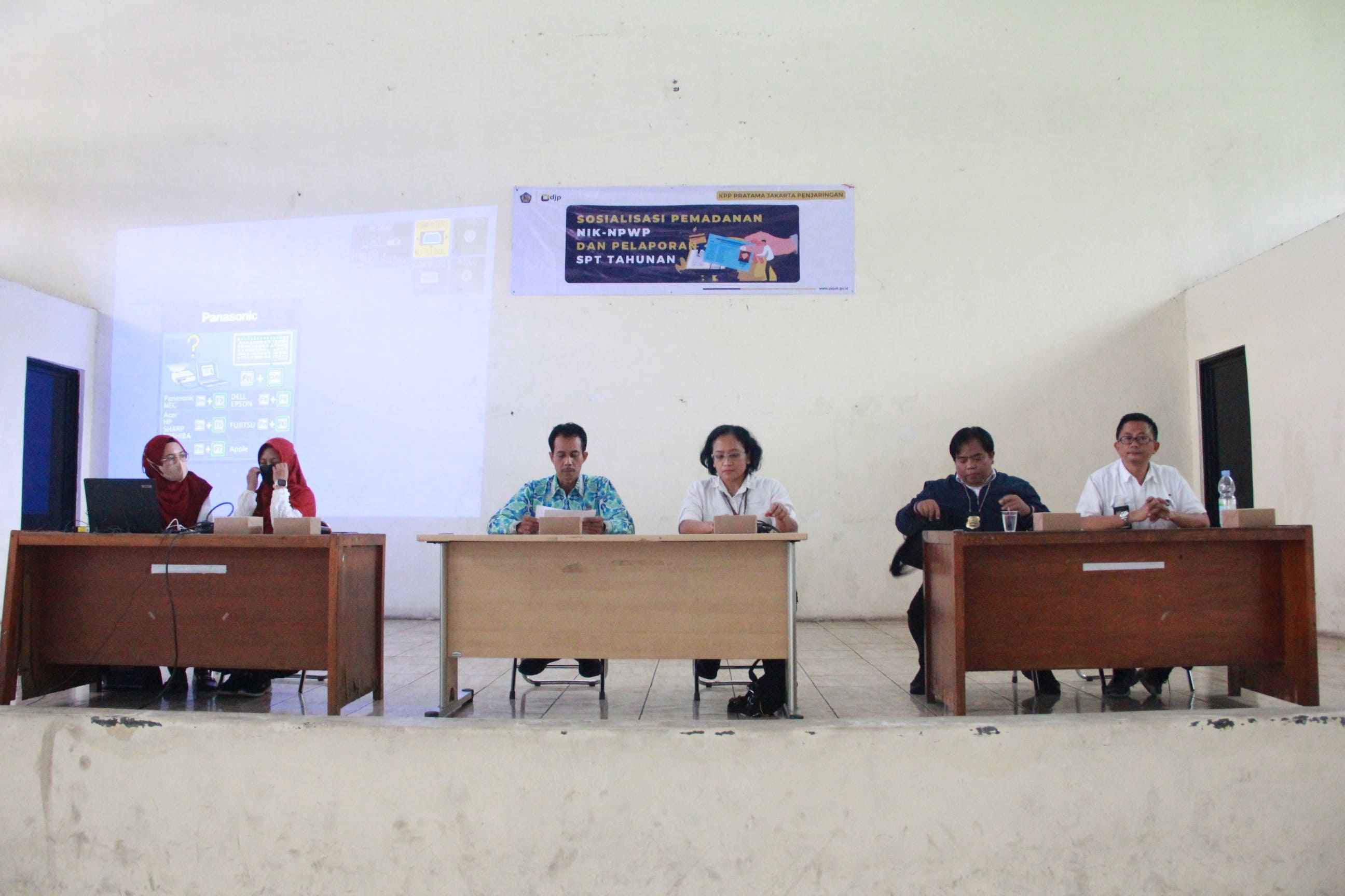 Kantor Pelayanan Pajak (KPP) Pratama Jakarta Penjaringan menyelenggarakan sosialisasi terkait pemutakhiran data mandiri dalam rangka implementasi Nomor Induk Kependudukan (NIK) sebagai Nomor Pokok Wajib Pajak (NPWP), dan tata cara pelaporan Surat Pemberitahuan (SPT) Tahunan Pajak Penghasilan (PPh) Orang Pribadi secara online di Aula Kelurahan Pejagalan, Jakarta Utara, DKI Jakarta (Kamis, 2/3).