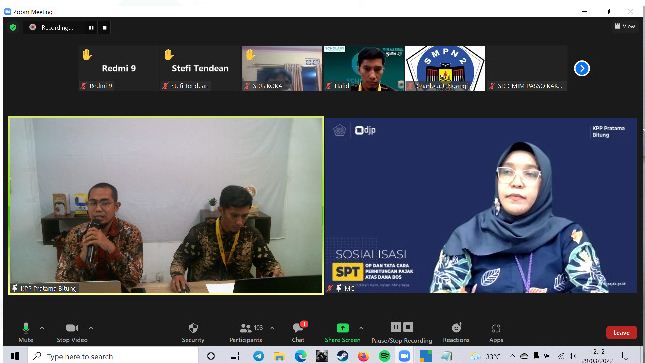 Kantor Pelayanan Pajak (KPP) Pratama Bitung bersama Dinas Pendidikan Kabupaten Minahasa mengadakan kegiatan dialog dan edukasi perpajakan terkait Dana Bantuan Operasional Sekolah (BOS) secara daring melalui media aplikasi zoom meeting, Kota Bitung (Selasa, 29/3). Tujuan dari kegiatan ini untuk memberikan pemahaman hak dan kewajiban perpajakan dalam belanja dan BOS kepada bendahara sekolah di Kabupaten Minahasa.