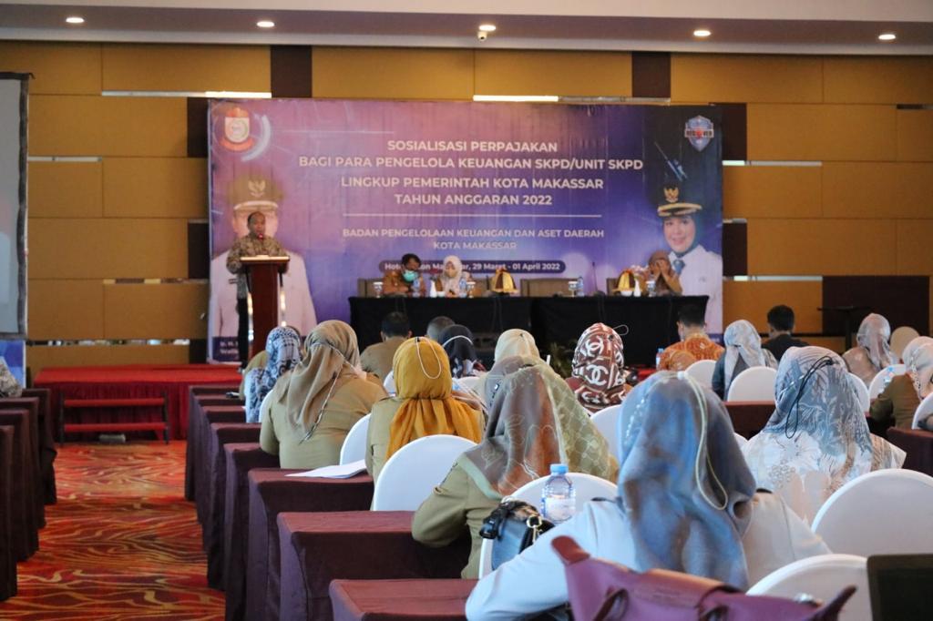 Kantor Pelayanan Pajak (KPP) Pratama Makassar Barat memenuhi undangan dari Badan Pengelolaan Keuangan dan Aset Daerah (BPKAD) Kota Makassar untuk memberikan sosialisasi perpajakan bagi bendahara satuan kerja pemerintah daerah (SKPD) dan kecamatan di lingkungan Kota Makassar (Selasa, 30/3). Kegiatan ini dilangsungkan secara tatap muka di Ballroom Hotel Aston Makassar, Kota Makassar.