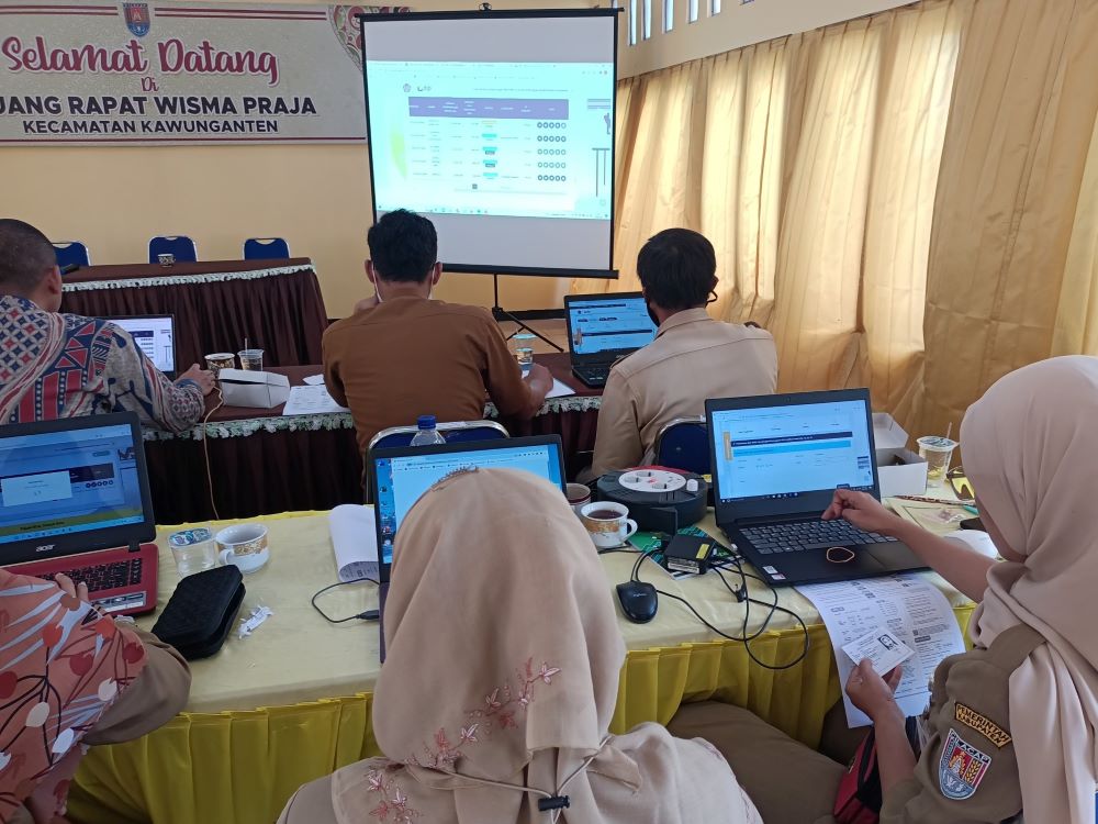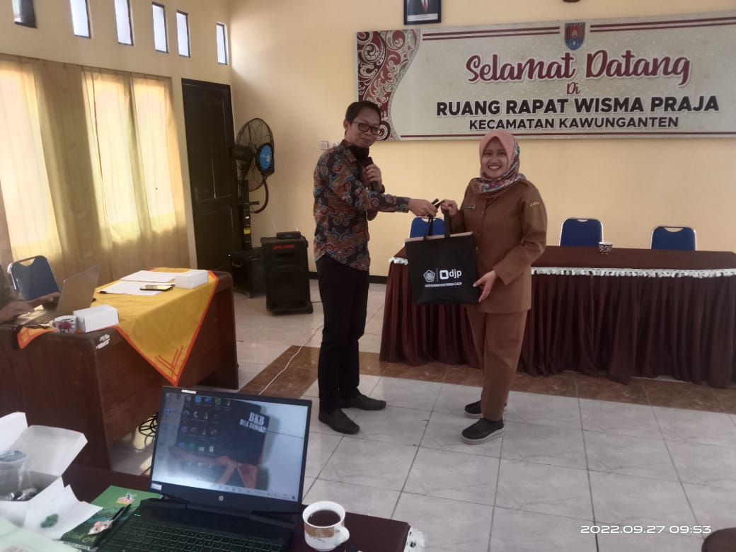 Tim Penyuluh KPP Pratama Cilacap memberikan edukasi perpajakan tentang penggunaan e-Bupot Unifikasi kepada para bendaharawan instansi pemerintah di Ruang Rapat Praja Kecamatan Kawunganten (Selasa, 27/10).