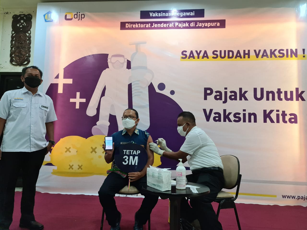 Vaksinasi tahap pertama ini diikuti oleh pegawai Kantor Wilayah DJP Papua dan Maluku serta Kantor Pelayanan Pajak Pratama Jayapura baik yang berstatus Pegawai Negeri Sipil (PNS) maupun Pegawai Pemerintah Non Pegawai Negeri (PPNPN).
