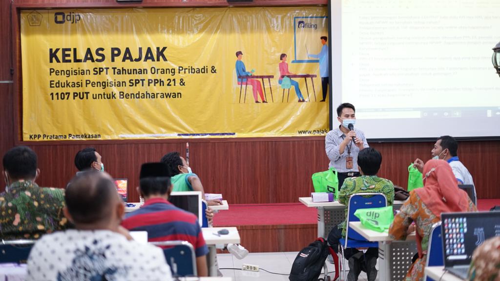 Sebanyak 20 bendahara desa dari Kabupaten Pamekasan mengikuti kelas pajak yang diselenggarakan oleh Kantor Pelayanan Pajak (KPP) Pratama Pamekasan. Kegiatan yang dipandu oleh fungsional penyuluh pajak tersebut berlangsung mulai pukul 08.00 sampai 11.00 WIB di Aula KPP Pratama Pamekasan, Madura (Kamis, 24/6).