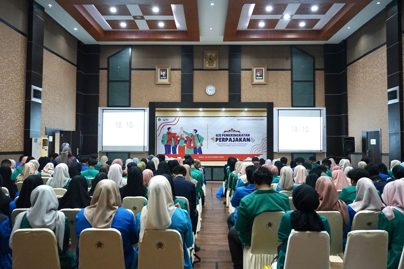 Bertempat di Aula Gedung A Gedung Keuangan Negara Banda Aceh, Kantor Pelayanan Pajak (KPP) Pratama Banda Aceh melaksanakan Uji Pemeringkatan Perpajakan kepada 200 mahasiswa yang berasal dari delapan Perguruan Tinggi di Banda Aceh (Rabu, 22/11).