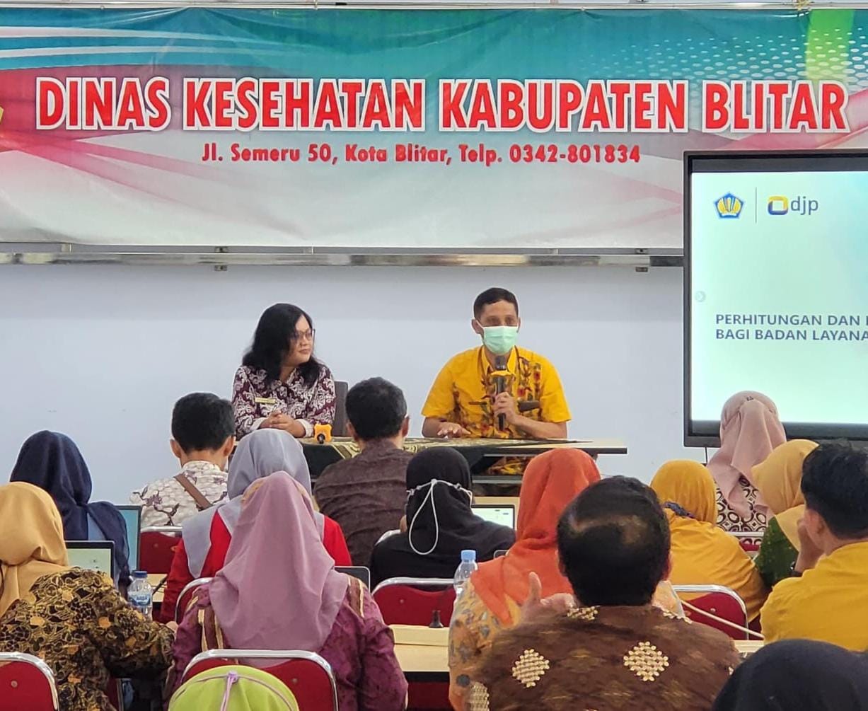 Penyuluh pajak Kantor Pelayanan Pajak (KPP) Pratama Blitar mengadakan sosialisasi dengan bendahara Dinas Kesehatan dan 24 bendahara pusat kesehatan masyarakat (puskesmas) yang tersebar di 22 kecamatan di wilayah Kabupaten Blitar, Jawa Timur, dalam sosialisasi pemotongan pajak oleh bendahara (Jumat, 14/6). Kegiatan ini bertujuan untuk memberikan pengetahuan yang sama tentang pemotongan pajak, utamanya pemotongan pajak penghasilan (PPh) pasal 21 atas penghasilan yang diterima oleh tenaga kesehatan puskesmas. Dalam kegiatan ini hadir juga account representative (AR) pengampu puskesmas.