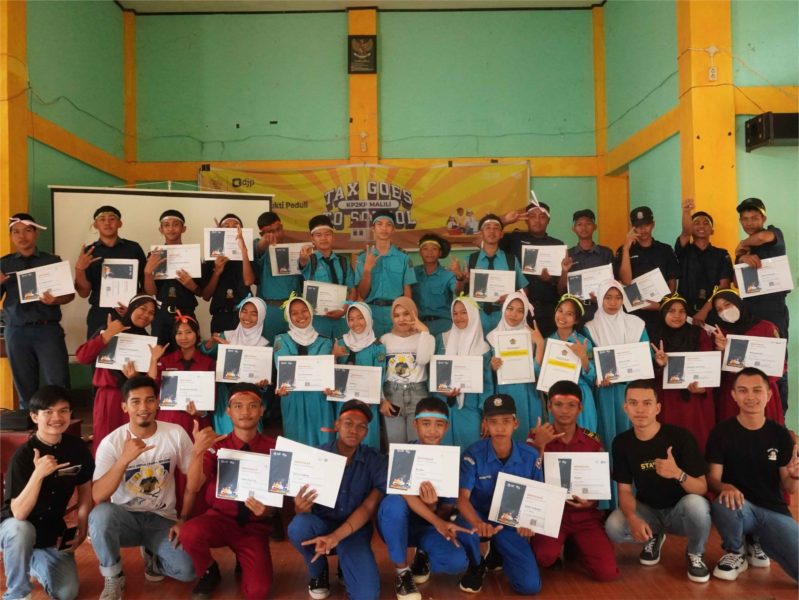 Kantor Pelayanan, Penyuluhan, dan Konsultasi Perpajakan (KP2KP) Malili kembali melaksanakan edukasi perpajakan kepada generasi muda melalui kegiatan Tax Goes To School (TGTS) 2023 yang kali ini diselenggarakan di SMK Negeri 1 Luwu Timur, Kabupaten Luwu Timur (Rabu, 23/8).