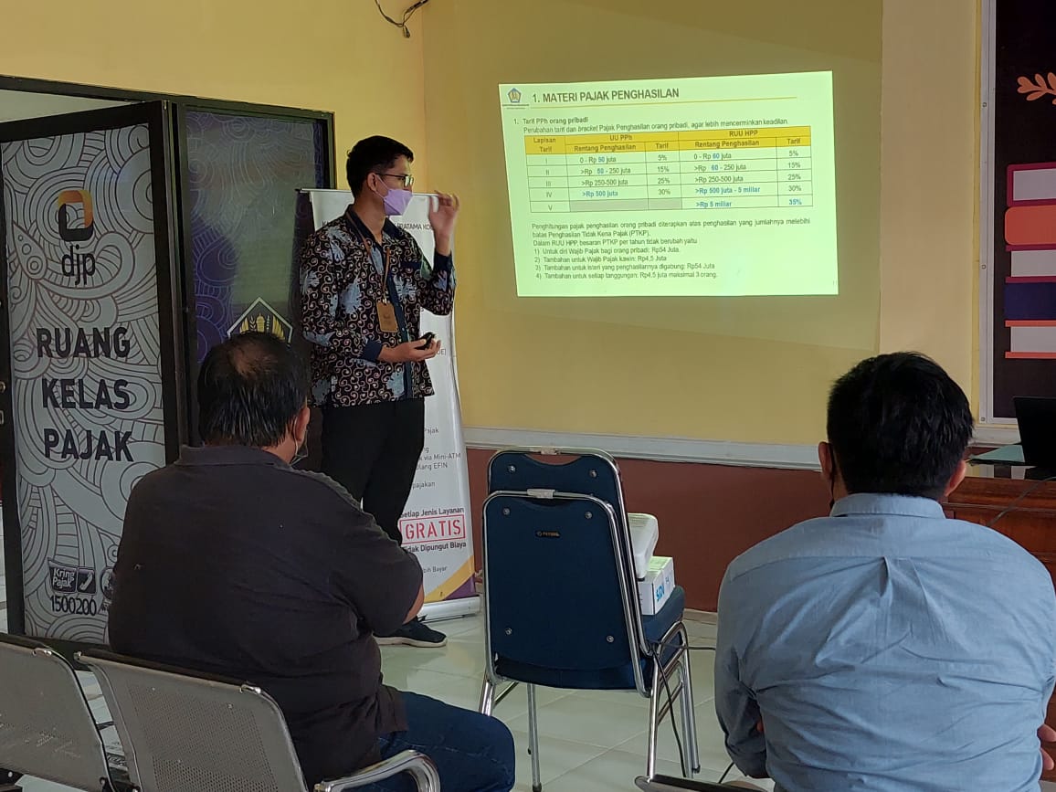 Sebanyak 30 Wajib Pajak Orang Pribadi dan Wajib Pajak Badan Kantor Pelayanan Pajak (KPP) Pratama Kolaka mengikuti sosialisasi terkait Undang-Undang Harmonisasi Peraturan Perpajakan (UU HPP) (Selasa, 30/11). Kegiatan ini dilangsungkan secara tatap muka di ruang aula Pos Pelayanan KPP Pratama Kolaka, Kabupaten Kolaka.