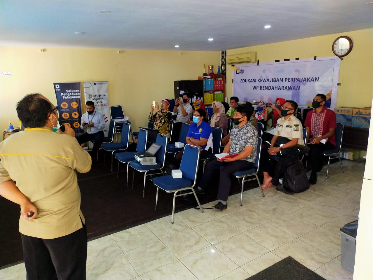 Kantor Pelayanan Penyuluhan dan Konsultasi Perpajakan (KP2KP) Rumbia mengadakan sosialisasi PMK nomor 231/PMK.03/2019 kepada bendahara instansi pemerintah se-Kabupaten Bombana di Ruang Kelas Pajak KP2KP Rumbia, Bombana (Kamis, 9/7). Acara ini diadakan dalam dua sesi dan dihadiri oleh 36 bendahara instansi pemerintah.
