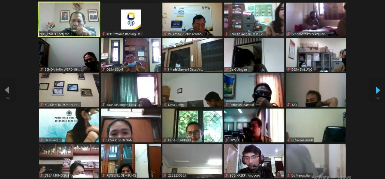 KPP Pratama Badung Utara dan KP2KP Kerobokan berkolaborasi dalam webinar (seminar web) tentang ketentuan NPWP Instansi Pemerintah melalui aplikasi Zoom Meeting yang dilangsungkan di KPP Pratama Badung Utara, Denpasar, Bali (Selasa, 30/06). Webinar kali ini diikuti oleh 40 bendahara desa di wilayah Kabupaten Badung.