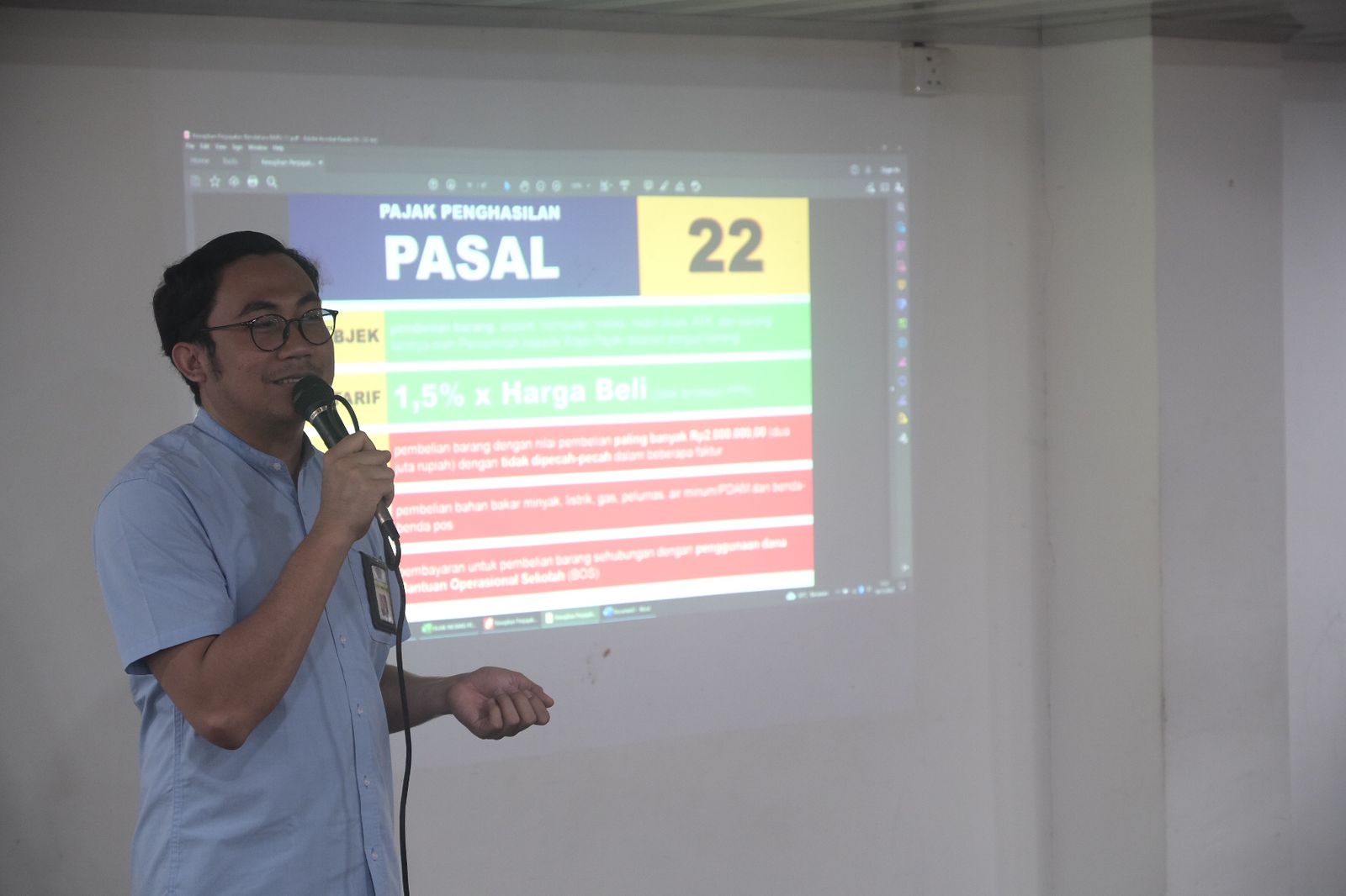 Dihadiri oleh 40 bendahara OPD KTT, edukasi perpajakan ini memiliki tujuan untuk menjelaskan kepada para bendahara OPD mengenai peran dan kewajiban yang harus mereka laksanakan sebagai bendahara OPD. Selain itu, penjelasan dan praktik penggunaan e-Bupot Unifikasi juga dilaksanakan pada kegiatan edukasi perpajakan ini.