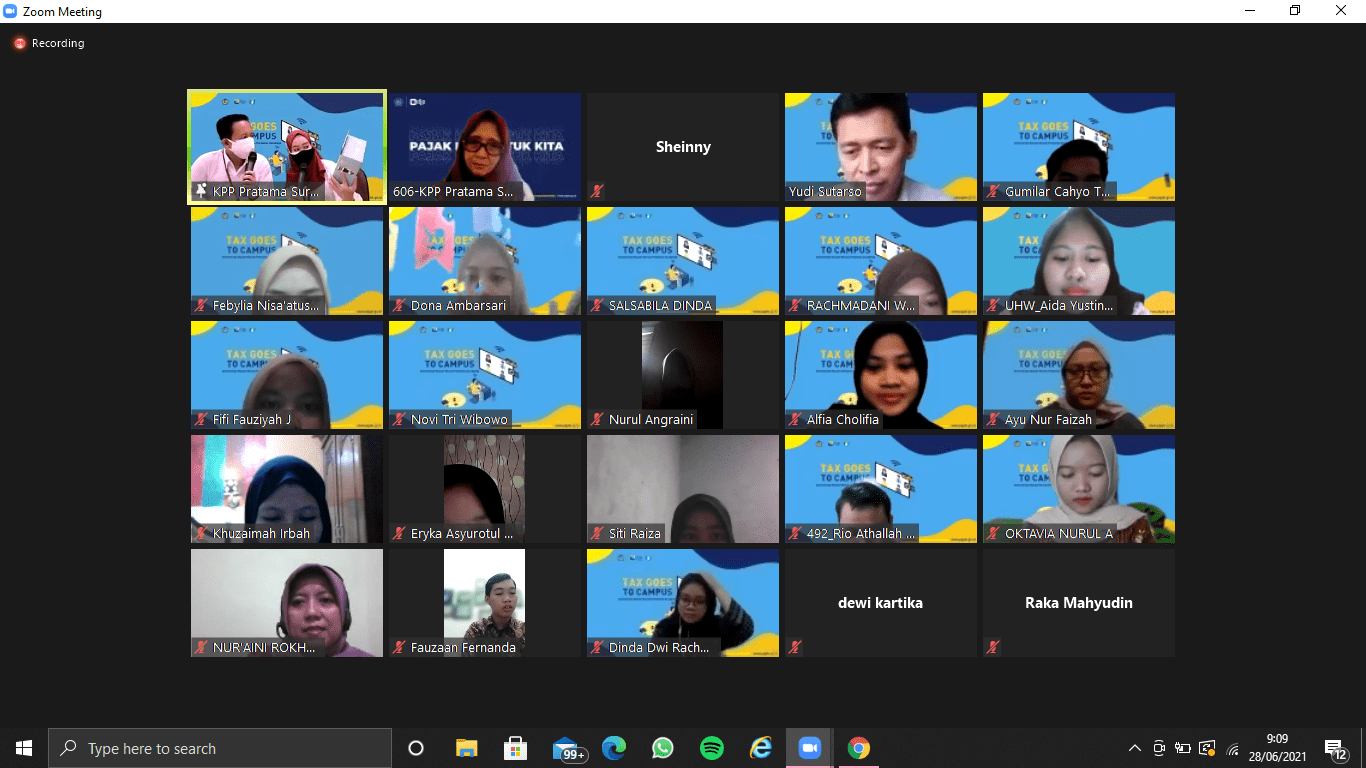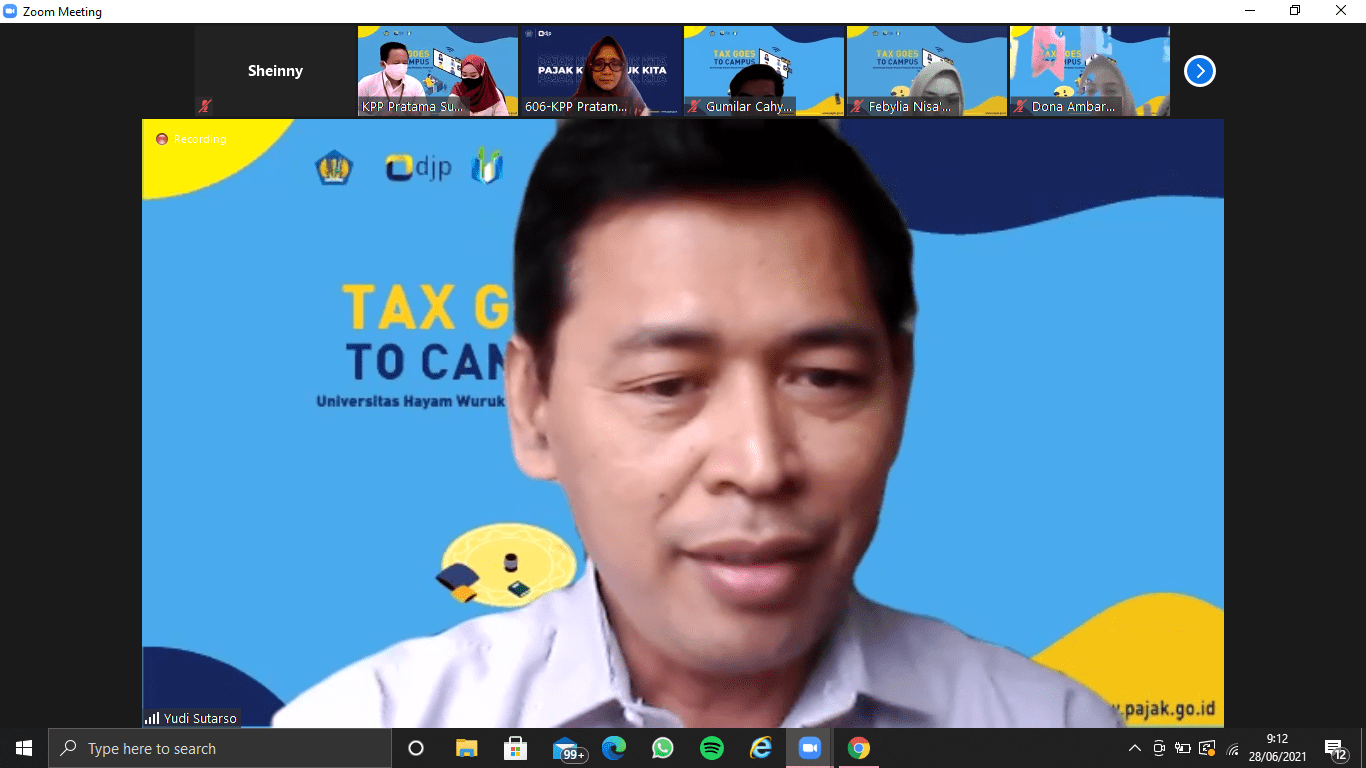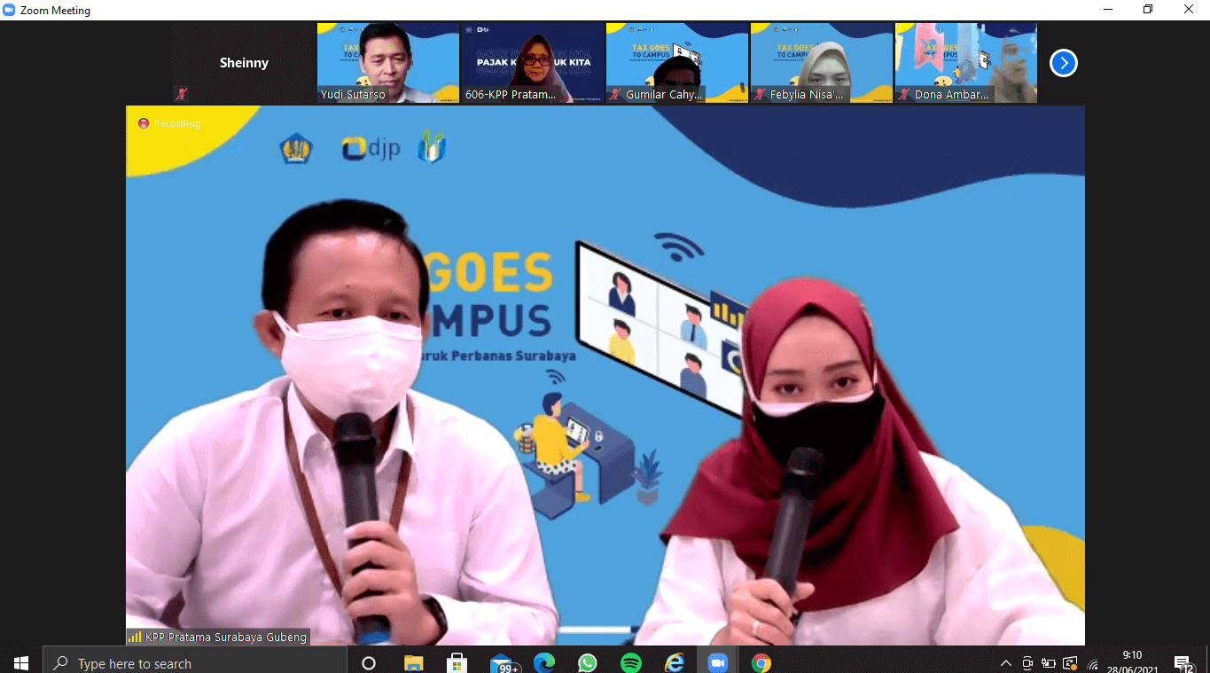 Kantor Pelayanan Pajak (KPP) Pratama Surabaya Gubeng bekerja sama dengan Tax Center STIE Perbanas Surabaya menyelenggarakan Tax Goes to Campus secara daring di Surabaya (Senin, 28/6). Acara ini diikuti oleh 45 mahasiswa dari berbagai jurusan Fakultas Ekonomi dan Bisnis Universitas Hayam Wuruk Perbanas Surabaya.