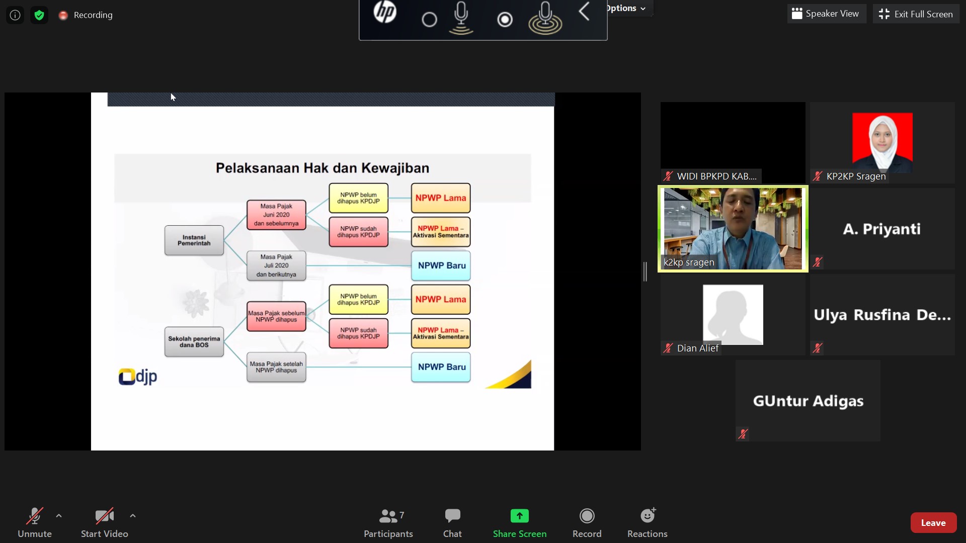 Kantor Pelayanan Penyuluhan dan Konsultasi Perpajakan (KP2KP) Sragen menyelenggarakan sosialisasi kewajiban bendahara BOS (Bantuan Operasional Sekolah) melalui media telekonferensi di aula KP2KP Sragen (Kamis, 5/11).