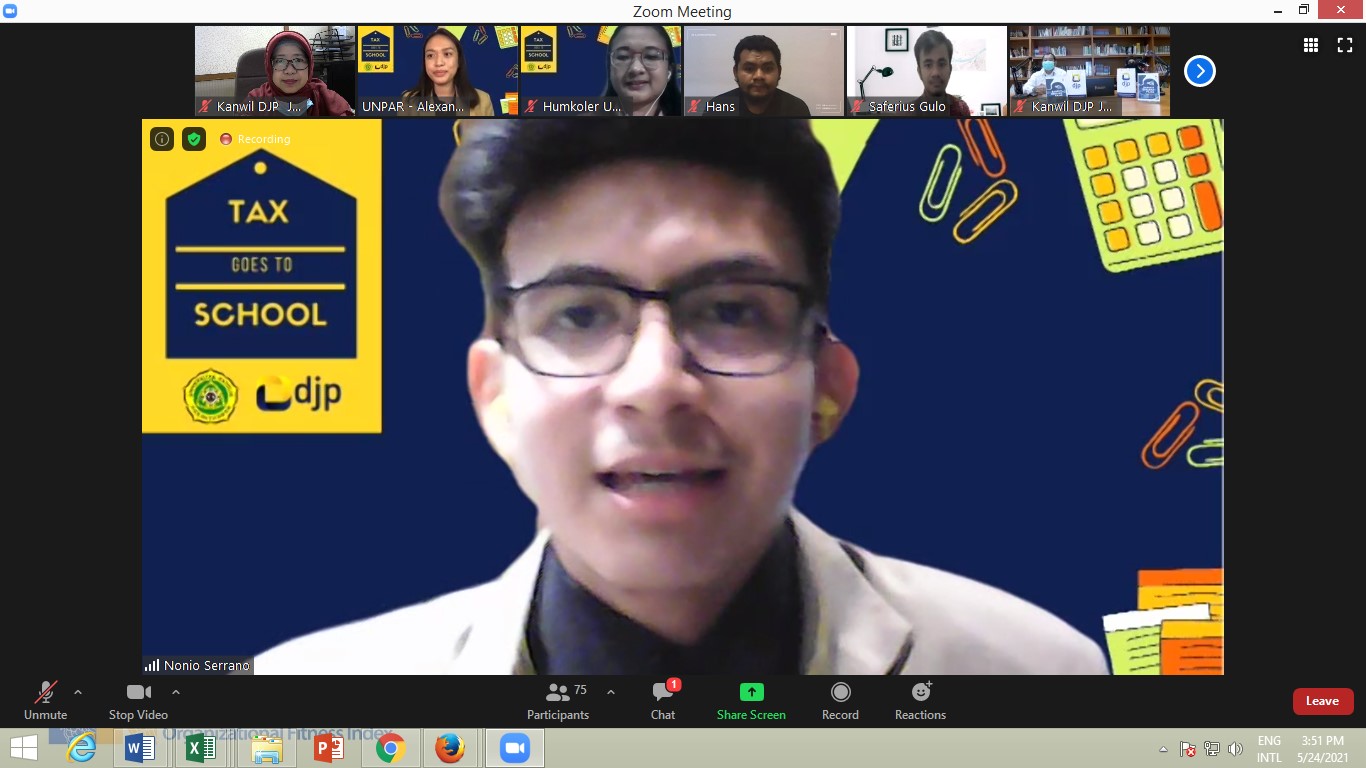Kantor Wilayah Direktirat Jenderal Pajak (Kanwil DJP) Jawa Barat I bekerja sama dengan Tax Center Universitas Parahyangan menggelar acara Tax Goes To School (TGTS) secara daring di Bandung (Senin, 24/5).