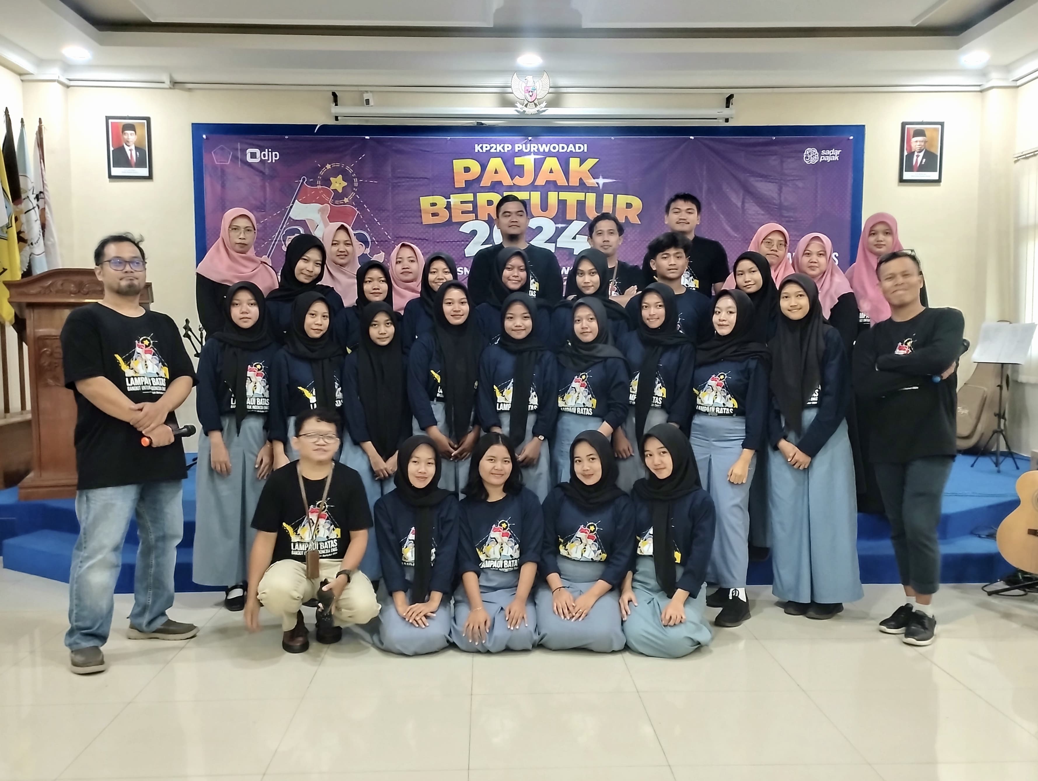 Kantor Pelayanan, Penyuluhan, dan Konsultasi Perpajakan (KP2KP) Purwodadi menyelenggarakan kegiatan Pajak Bertutur bekerja sama dengan Sekolah Menengah Kejuruan (SMK) Negeri 1 Purwodadi bertempat di Aula SMKN 1, Jl. Pangeran Diponegoro No.24, Purwodadi. Kegiatan ini diikuti oleh 60 siswa jurusan Akuntansi Keuangan Lembaga (Rabu, 7/8).