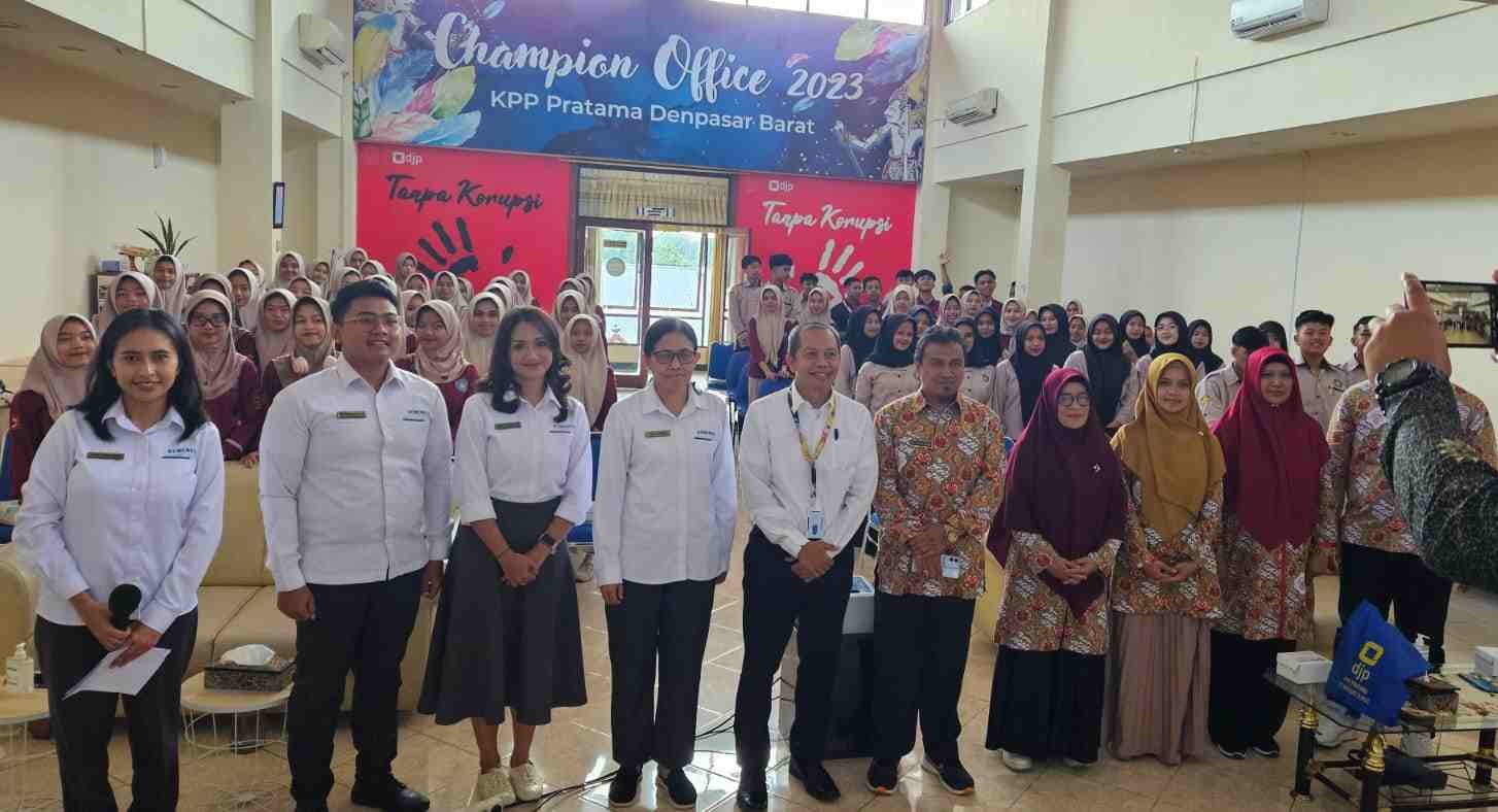 Kunjungan 64 siswa kelas XI beserta 4 guru pendamping ini dilaksanakan dalam rangka studi lapangan terkait pengenalan pajak, tugas, dan fungsi KPP Pratama, serta manfaat pajak bagi negara. Plh. Kepala KPP Pratama Denpasar Barat Muhammad Afif Fauzi turut hadir untuk memberikan kata sambutan.
