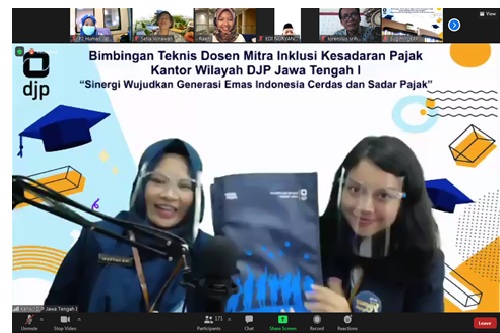 Kantor Wilayah DJP Jawa Tengah I bersama 74 Perguruan Tinggi di Jawa Tengah menyelenggarakan webinar (seminar web) dalam rangka bimbingan teknis dosen mitra inklusi sadar pajak dengan tema Sinergi Wujudkan Generasi Emas Indonesia Cerdas dan Sadar Pajak di Semarang (Rabu, 2/12).