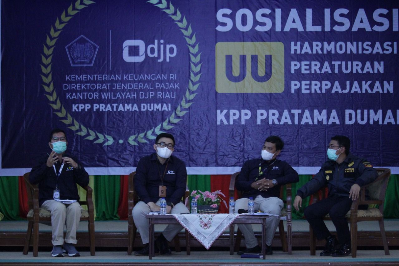 Kantor Pelayanan Perpajakan (KPP) Pratama Dumai mengadakan acara Sosialisasi Undang Undang Harmonisasi Peraturan Perpajakan (UU HPP) di Gedung Pendopo Walikota Dumai (Jumat,17/12). Acara ini dihadiri oleh perwakilan dari setiap Instansi Pemerintah, Lembaga, Asosiasi, dan perwakilan dari 50 orang Wajib Pajak dari seluruh Kota Dumai.