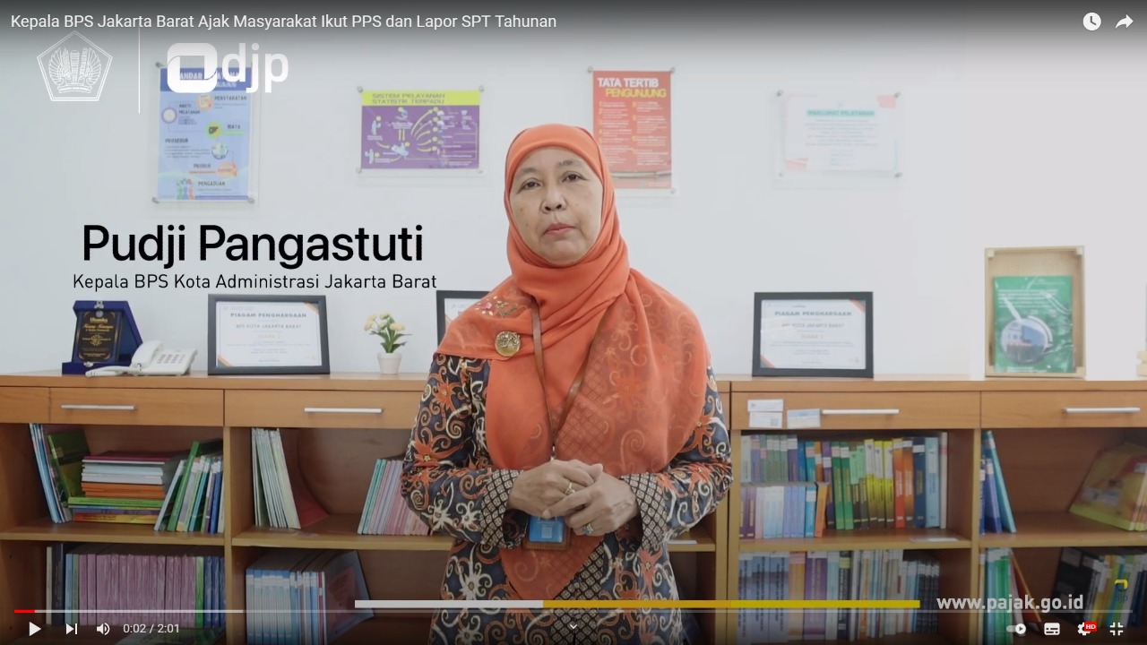 Kepala Badan Pusat Statistik (BPS) Kota Administrasi Jakarta Barat, Pudji Pangastuti, mengajak masyarakat untuk memanfaatkan Program Pengungkapan Sukarela (PPS) melalui rekaman vidio yang diunggah ke kanal YouTube Kantor Wilayah Direktorat Jenderal Pajak Jakarta Barat (Selasa, 22/3). Tayangan vidio tersebut dapat pula disaksikan melalui Instagram Kantor Wilayah Direktorat Jenderal Pajak Jakarta Barat, @pajakjakbar.