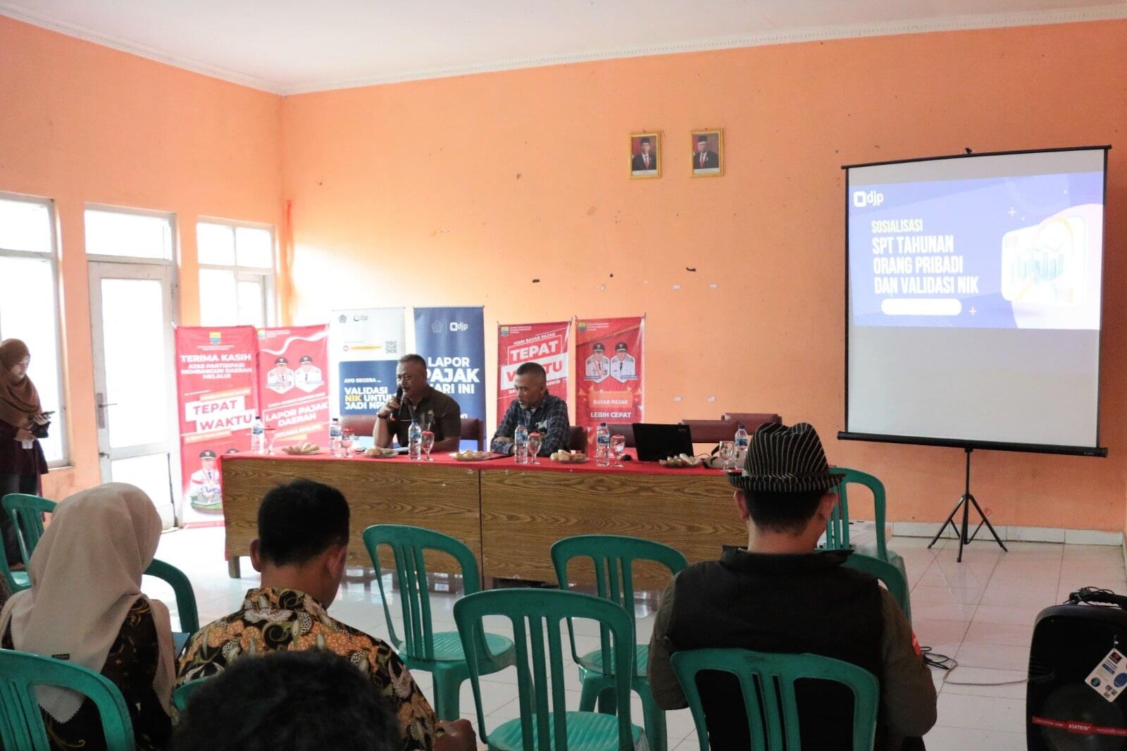 Sebanyak 40 orang peserta yang merupakan perangkat desa, perwakilan pengurus sekolah, dan perwakilan puskesmas di Kecamatan Sukanagara mengikuti Bimbingan Teknis (Bimtek) pelaporan SPT dan Pemadanan NIK menjadi NPWP yang diadakan oleh Kantor Pelayanan Pajak (KPP) Pratama Cianjur di Aula Desa Sukamekar, Kecamatan Sukanagara, Kabupaten Cianjur (Kamis, 9/3). Materi bimtek disampaikan oleh Penyuluh Pajak Angga Kristianto dan Muhammad Fadel Naufal yang menjelaskan langkah-langkah pelaporan SPT Tahunan dan proses validasi data NIK pada laman pajak.go.id.