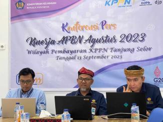 Kepala Seksi Pengawasan III Kantor Pelayanan Pajak (KPP) Pratama Tanjung Redeb Dennis Dunan menghadiri acara Konferensi Pers Anggaran Pendapatan dan Belanja Negara (APBN) bulan Agustus 2023 di wilayah pembayaran Kantor Pelayanan Perbendaharaan Negara (KPPN) Tanjung Selor bertempat di Ruang Kolaborasi KPPN Tanjung Selor, Jalan Soetoyo No. 01, Tanjung Selor Hulu, Kab. Bulungan, Kalimantan Utara (Rabu, 13/9).