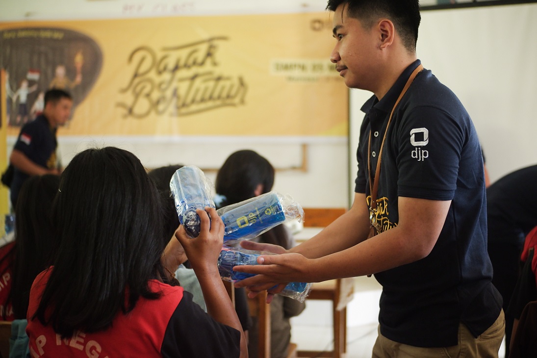 Tidak hanya itu saja namun KP2KP Mamasa juga mengajak untuk seluruh elemen sekolah SMPN 5 Mamasa untuk mulai hidup memperhatikan lingkungan dengan dibagikannya botol minum yang bisa digunakan para siswa untuk menghindari penggunaan botol minum sekali pakai sehingga dapat mengurangi sampah yang ada. "Terima kasih kak, besok pagi langsung mi ku coba kak," ucap salah satu siswa setelah menerima botol minum. Para guru berharap dengan adanya kegiatan pajak bertutur kali ini dapat membuka mata siswa mengenai dunia perpajakan serta dapat menggerakan siswa untuk dapat hidup dengan selalu memperhatikan dan menjaga alam.