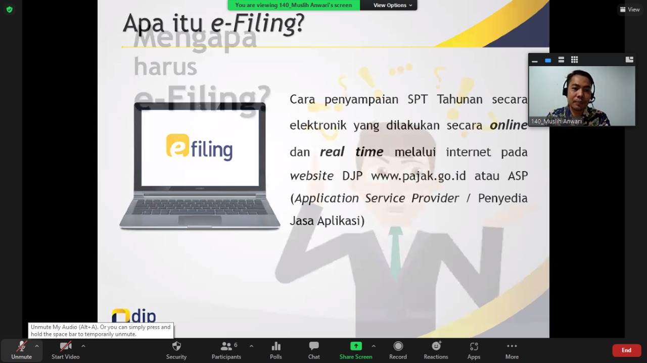 Narasumber dalam kegiatan kali ini adalah Fungsional Penyuluh Pajak Ahli Pertama Muslih Anwari. Dalam paparannya, Muslih memberikan materi teknis terkait pelaporan SPT Tahunan Orang Pribadi dengan formulir 1770 S dan 1770 SS.