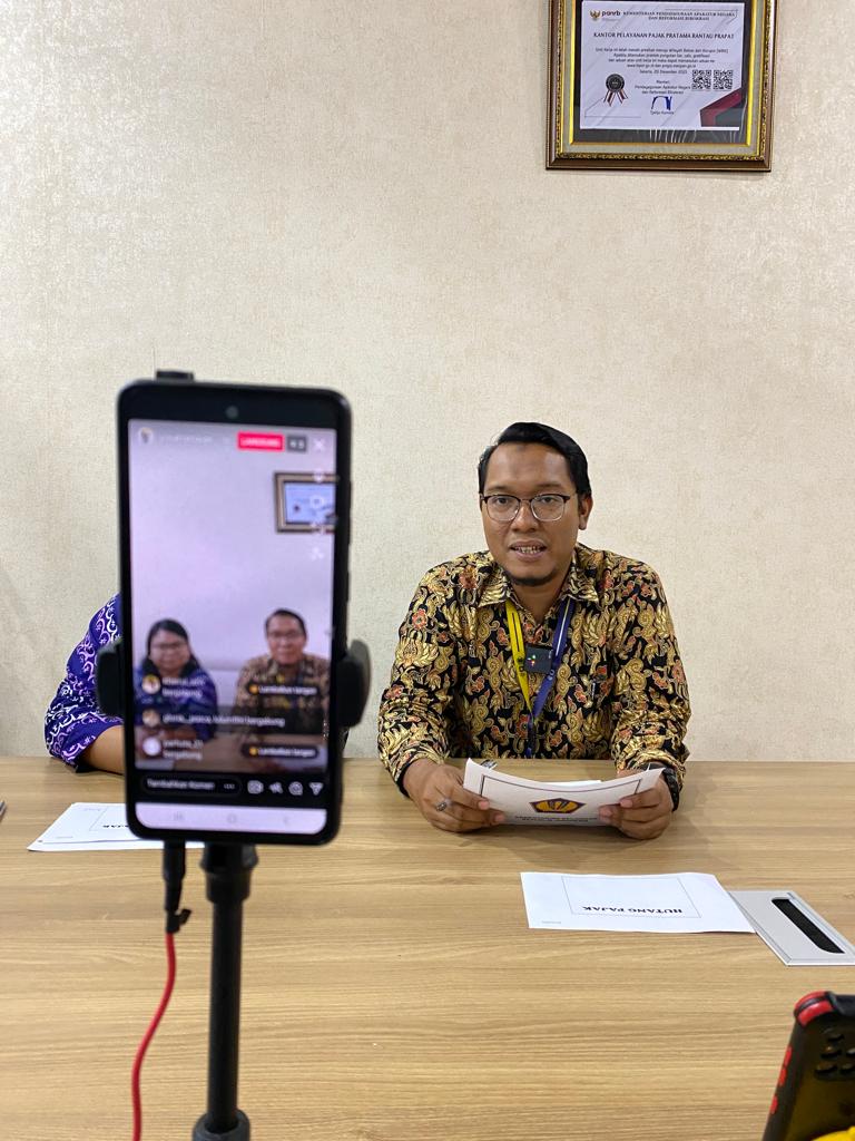 Kantor Pelayanan Pajak (KPP) Pratama Rantau Prapat mengadakan siaran langsung lewat media sosial Instagram KPP Pratama Rantau Prapat di Ruang Temu KPP Pratama Rantau Prapat, Kabupaten Labuhanbatu, Sumatera Utara (Selasa, 13/6).