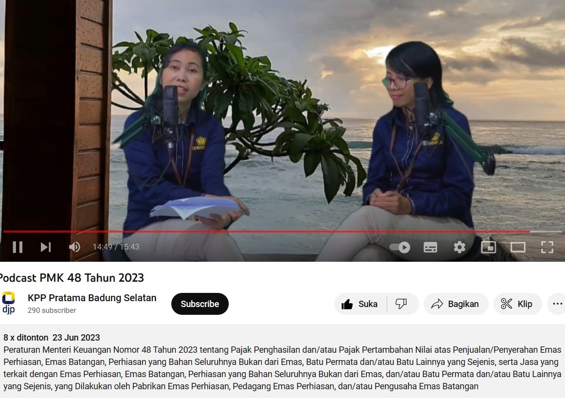 Kantor Pelayanan Pajak Pratama Badung Selatan kembali mengadakan podcast dengan judul "Podcast PMK 48 Tahun 2023" yang telah diunggah dalam kanal Youtube KPP Pratama Badung Selatan (Jumat, 23/6).